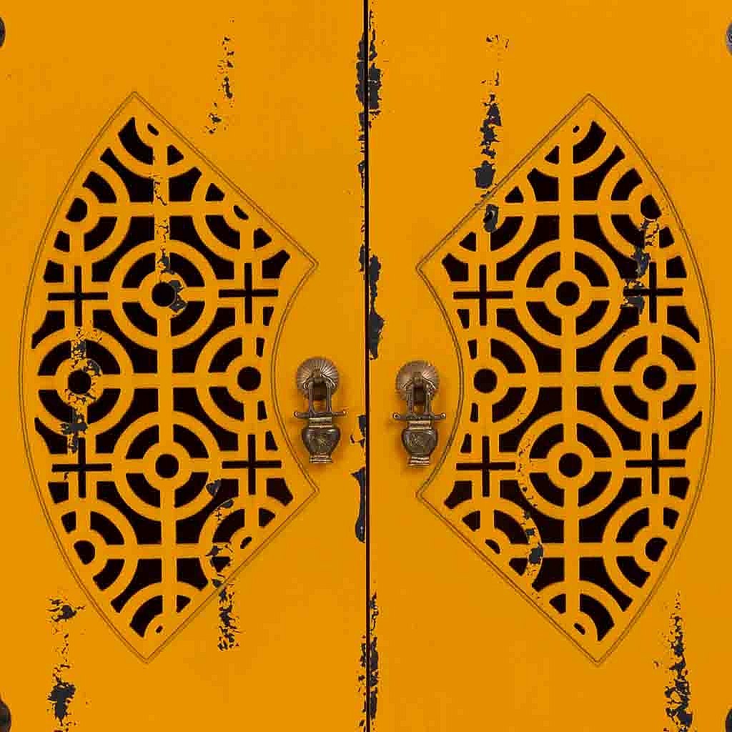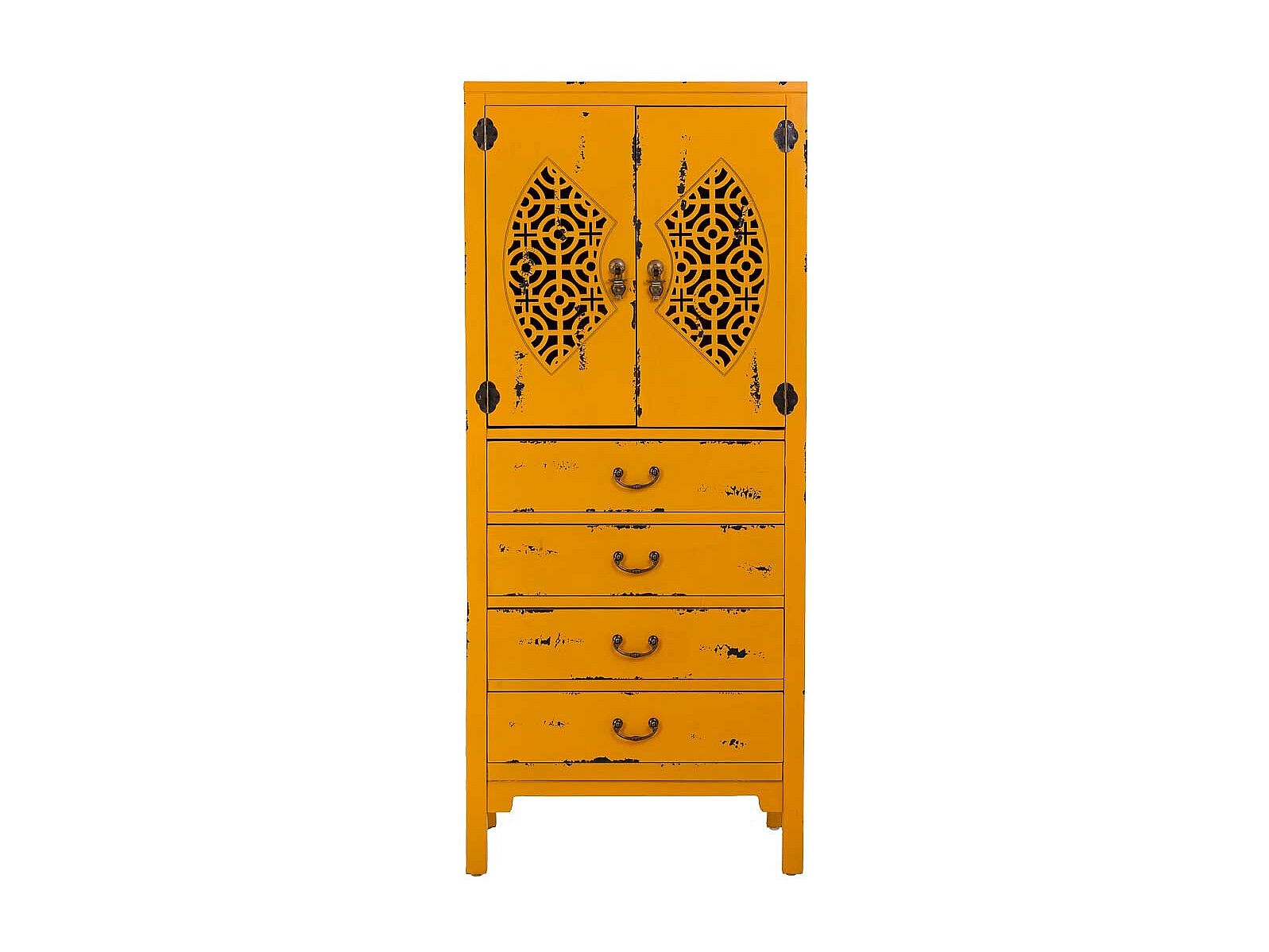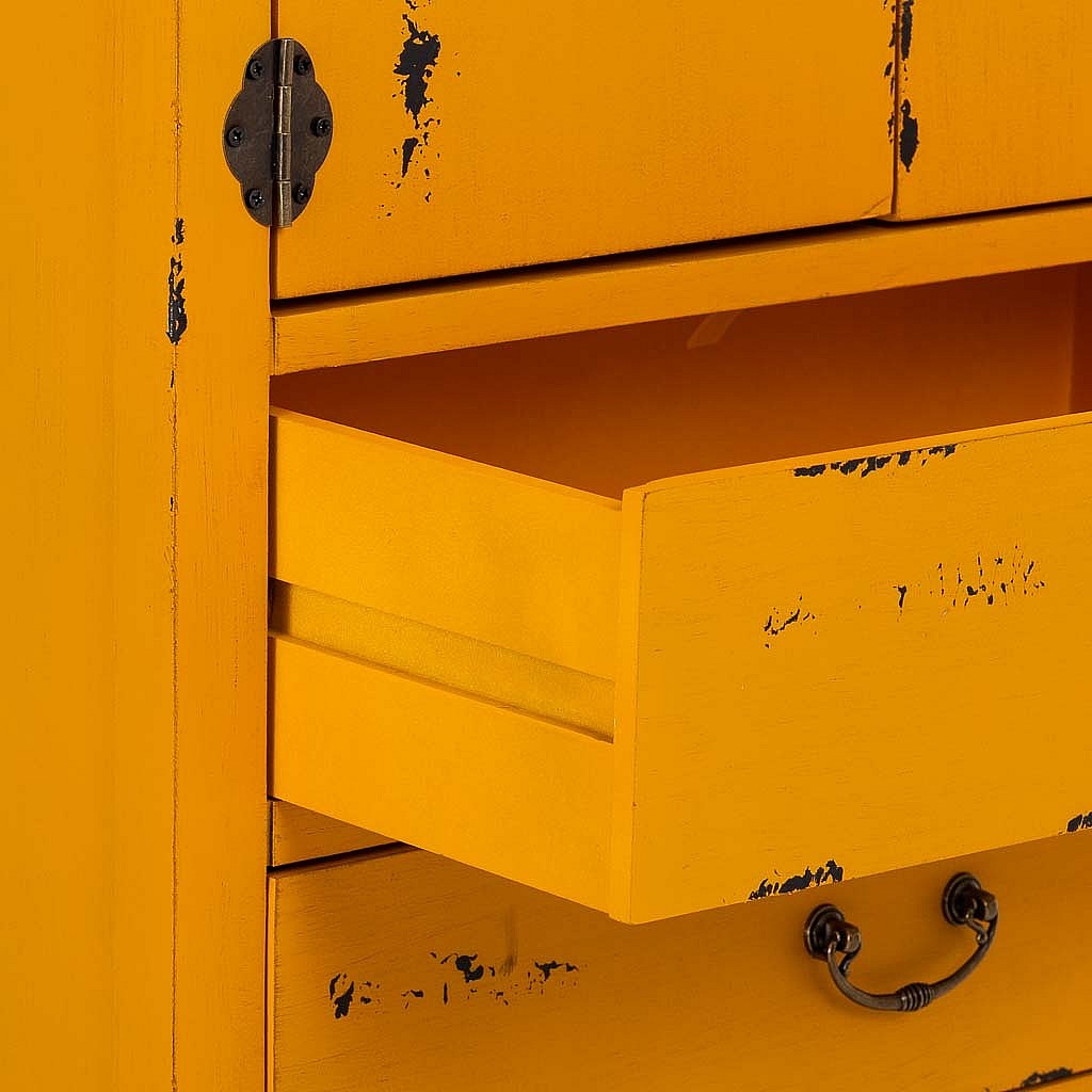 Armário em madeira com 4 gavetas e 2 portas, amarelo, 60x40x140h cm