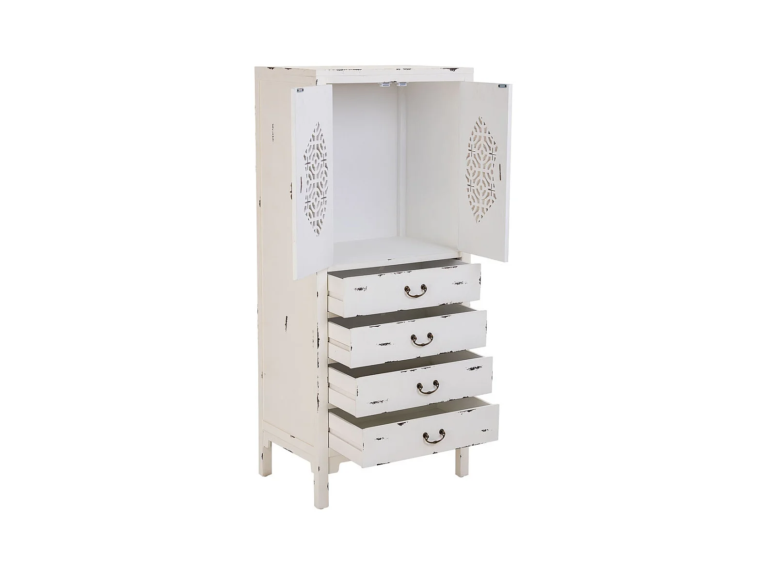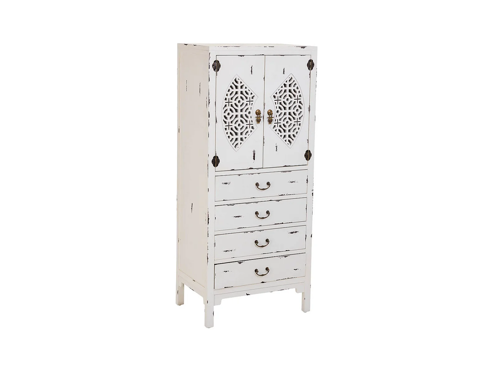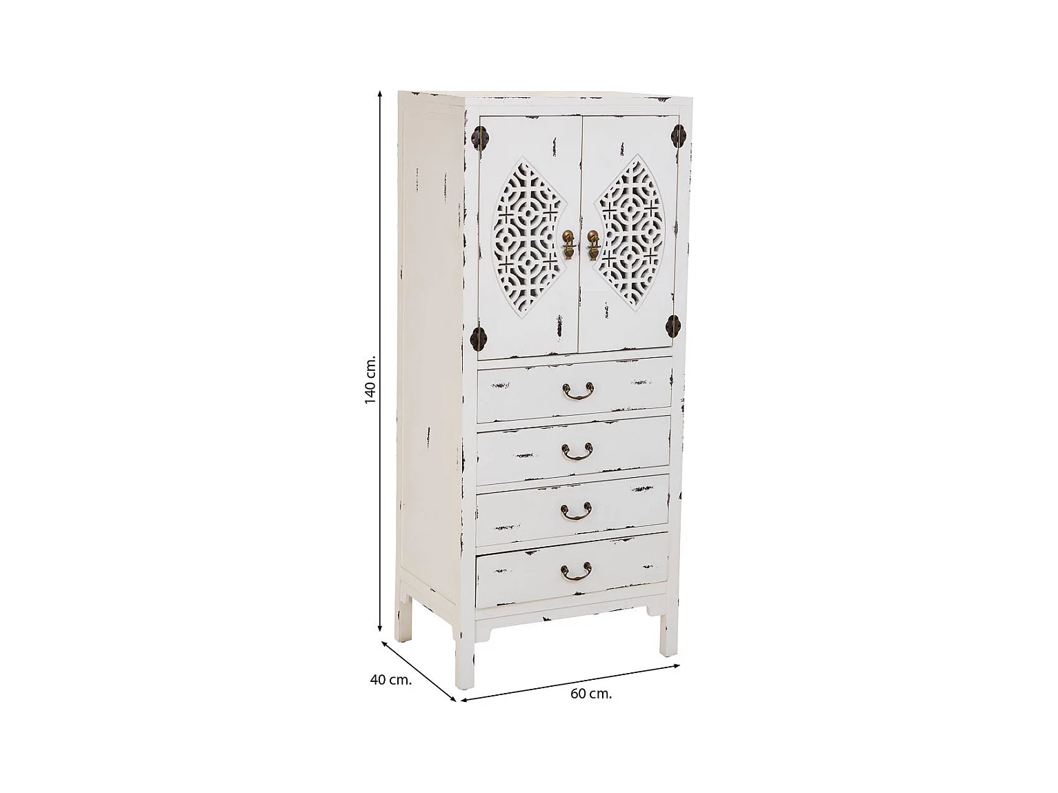 Armário em madeira com 4 gavetas e 2 portas, branco, 60x40x140h cm