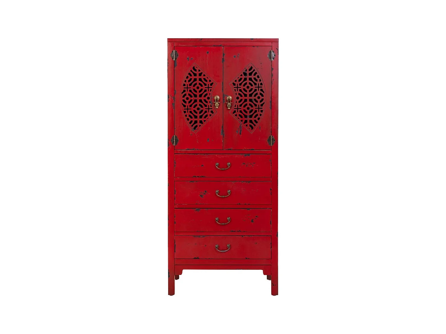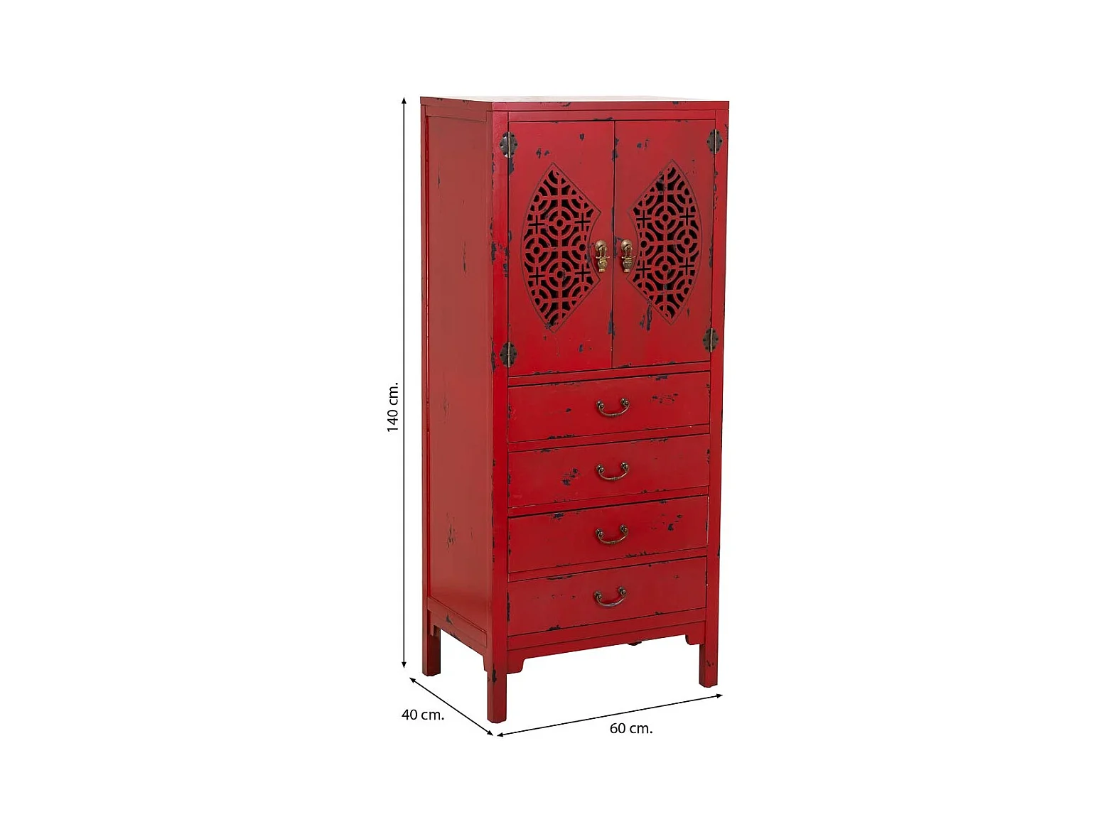 Armário em madeira com 4 gavetas e 2 portas em vermelho 60x40x140h cm