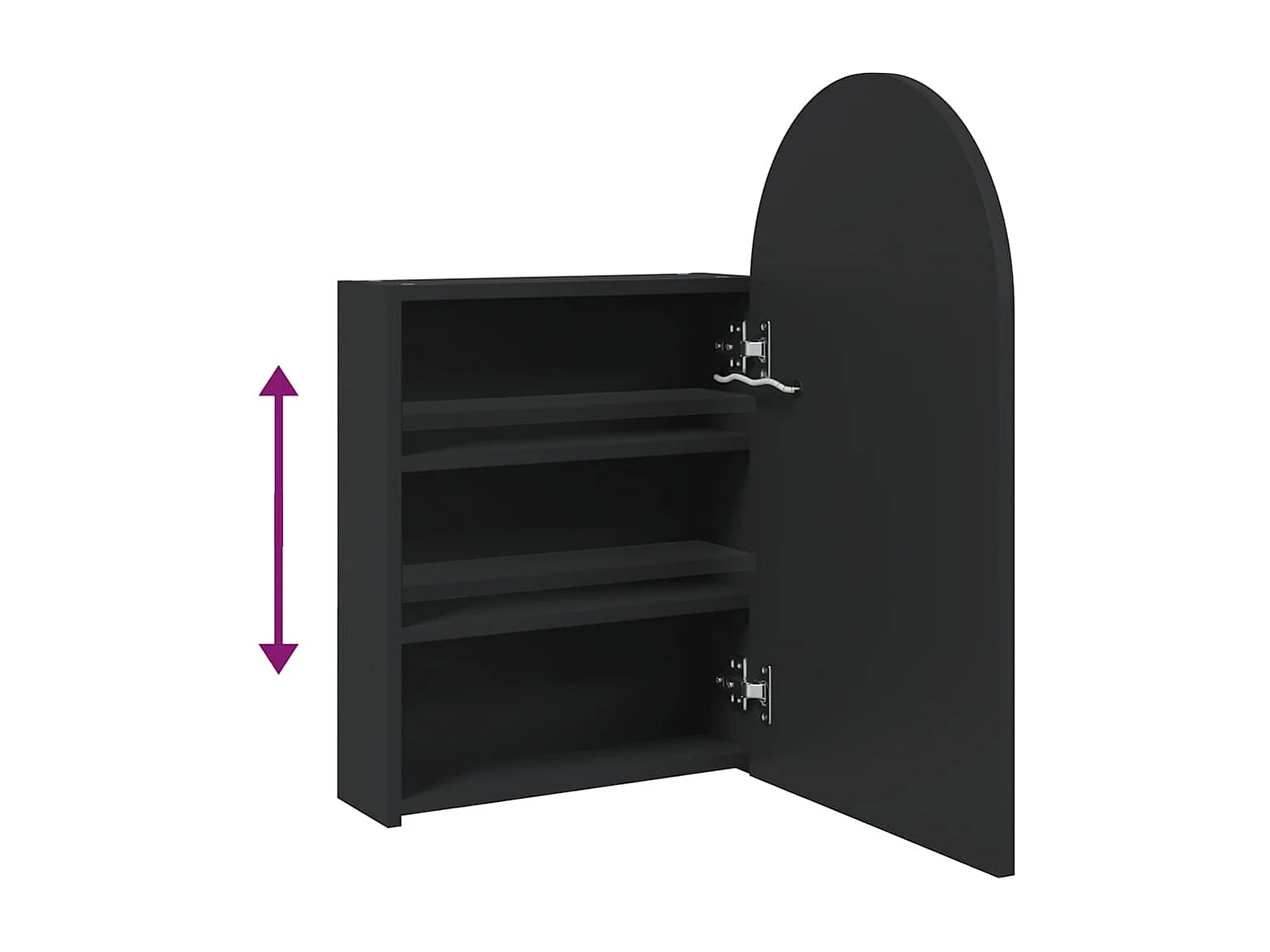 Armário espelhado arqueado p/ casa de banho c/ luz LED preto
