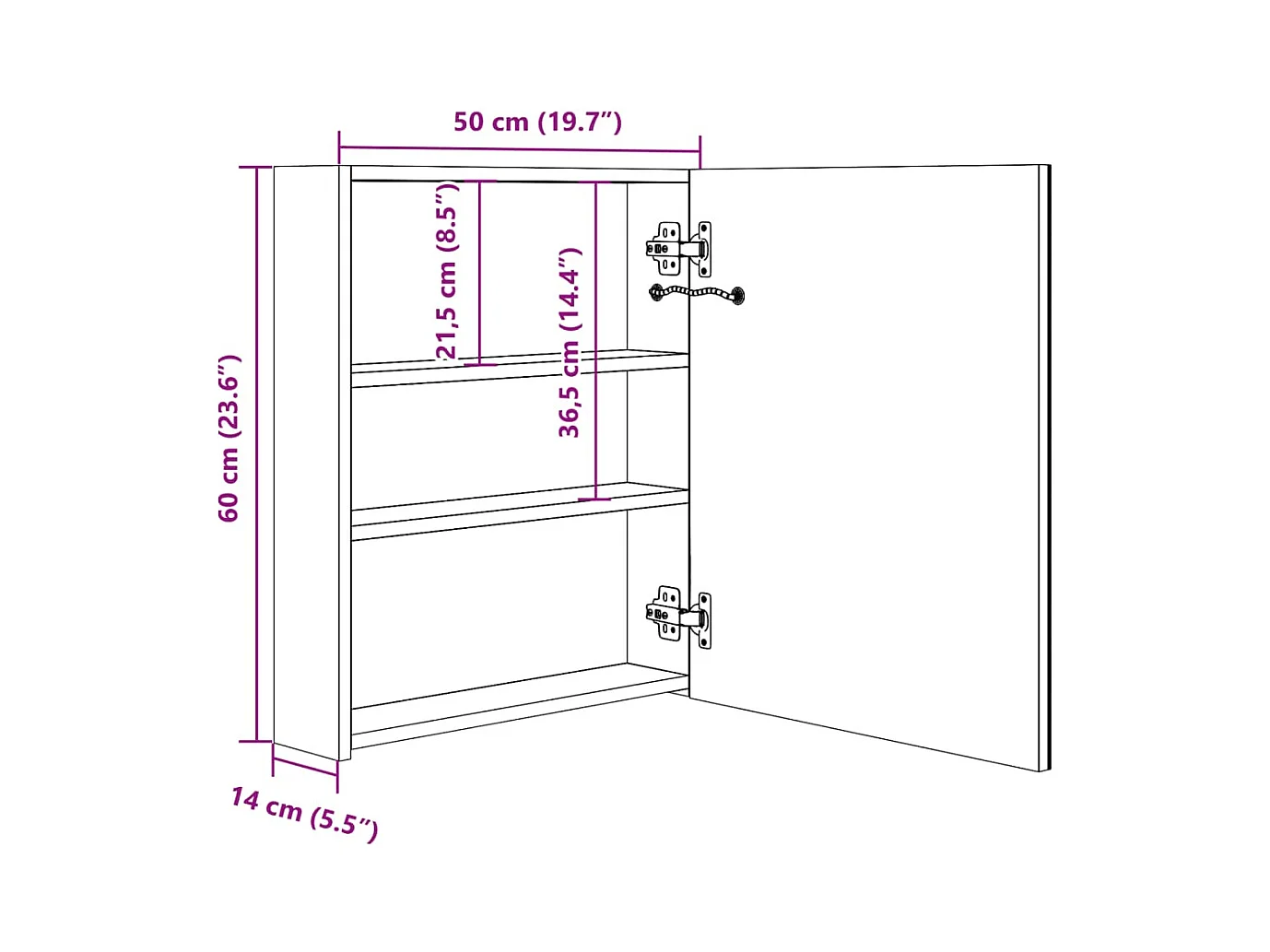 Armário espelhado para casa de banho com LED 50x13x70 cm