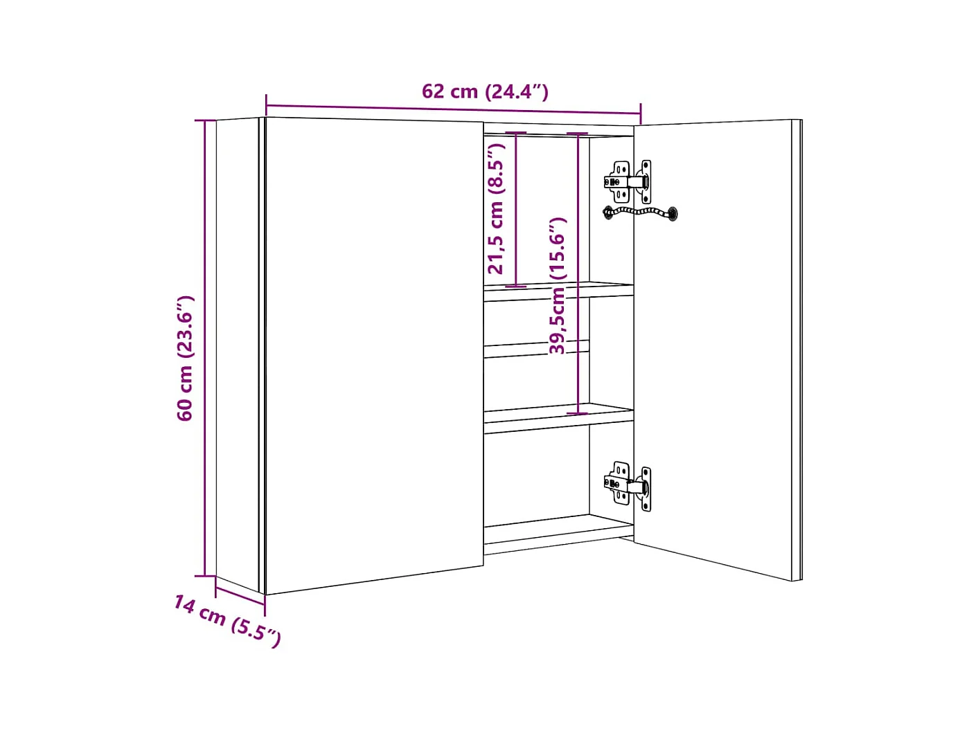 Armário espelhado para casa de banho com LED 60x14x62 cm