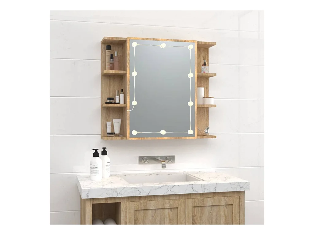 Armário espelhado com LED 91x15x76,5 cm carvalho sonoma PT761054