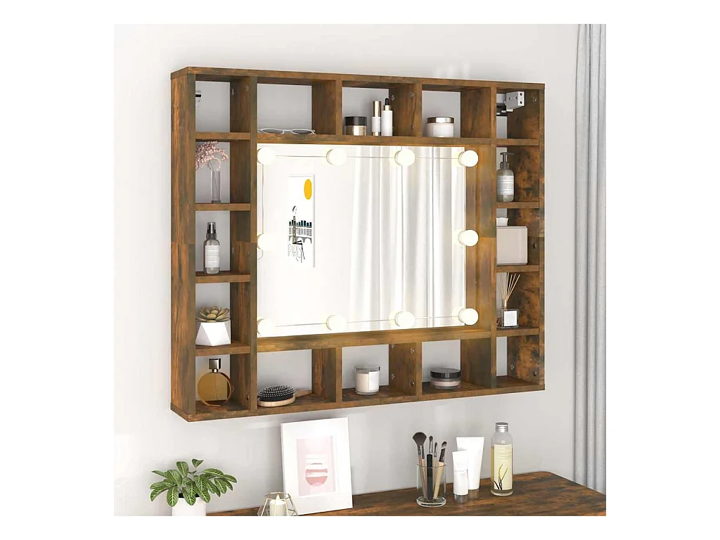 Armário espelhado com LED 91x15x76,5 cm carvalho fumado