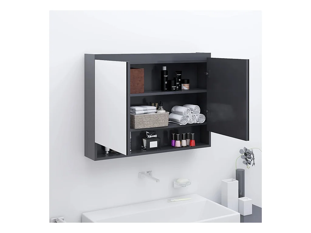 Armário espelhado p/ casa banho 80x15x60cm MDF cinza brilhante
