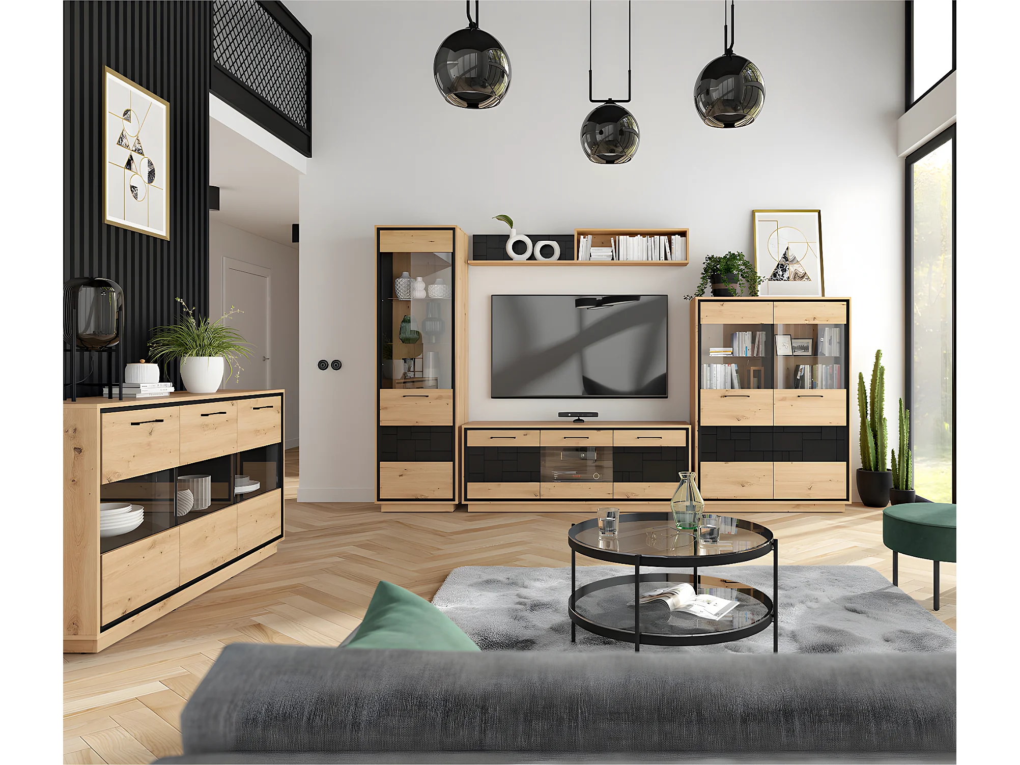 Armário expositor 1 porta Elijah madeira e preto 200cm