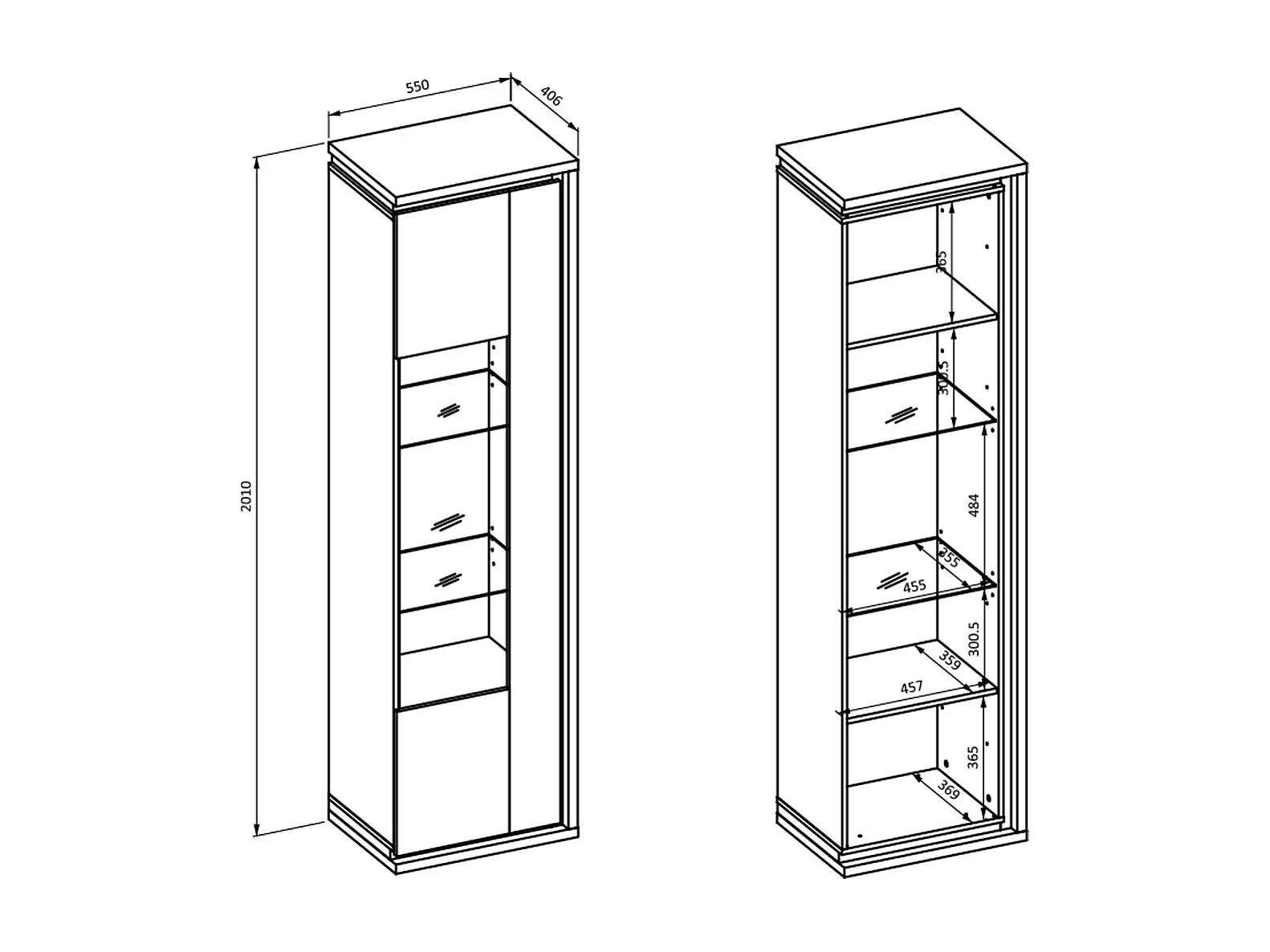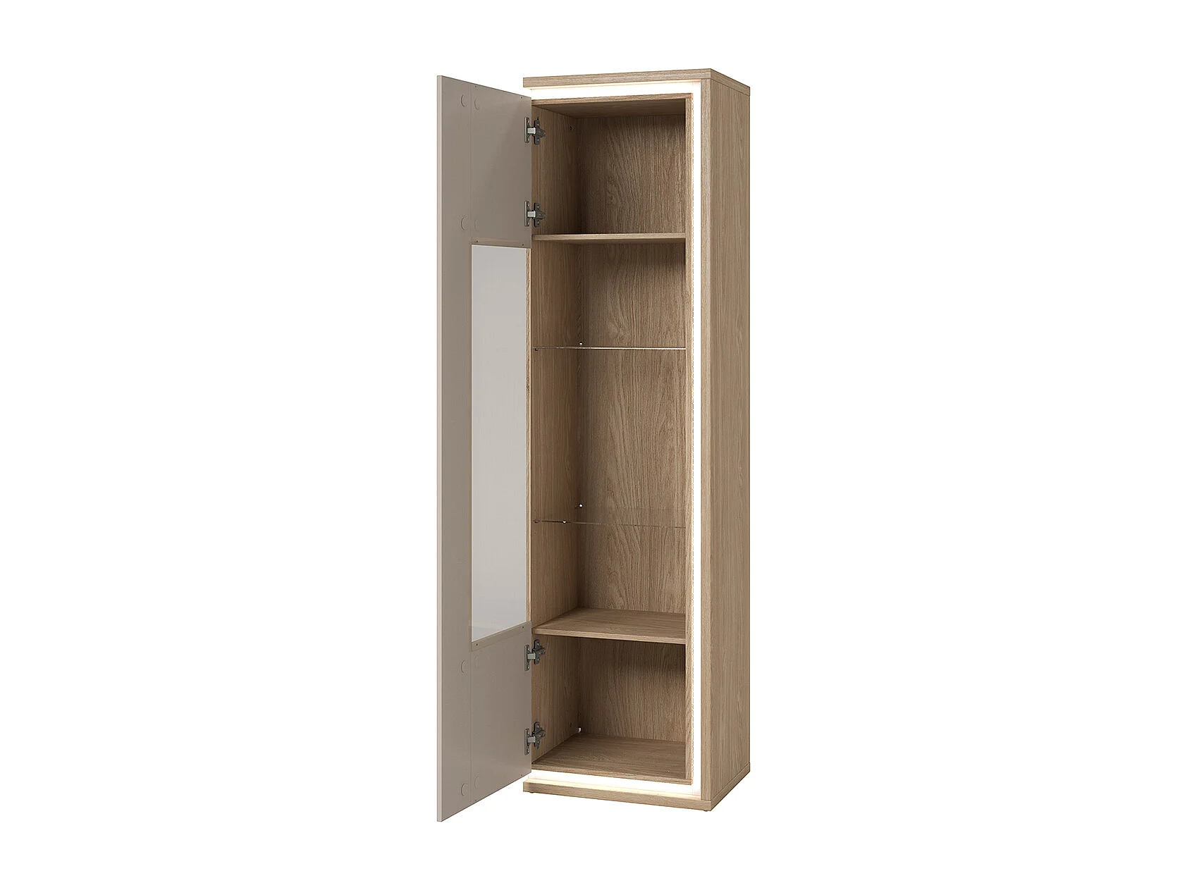 Armário expositor de 1 porta Iria Cashmere e Madeira, à esquerda