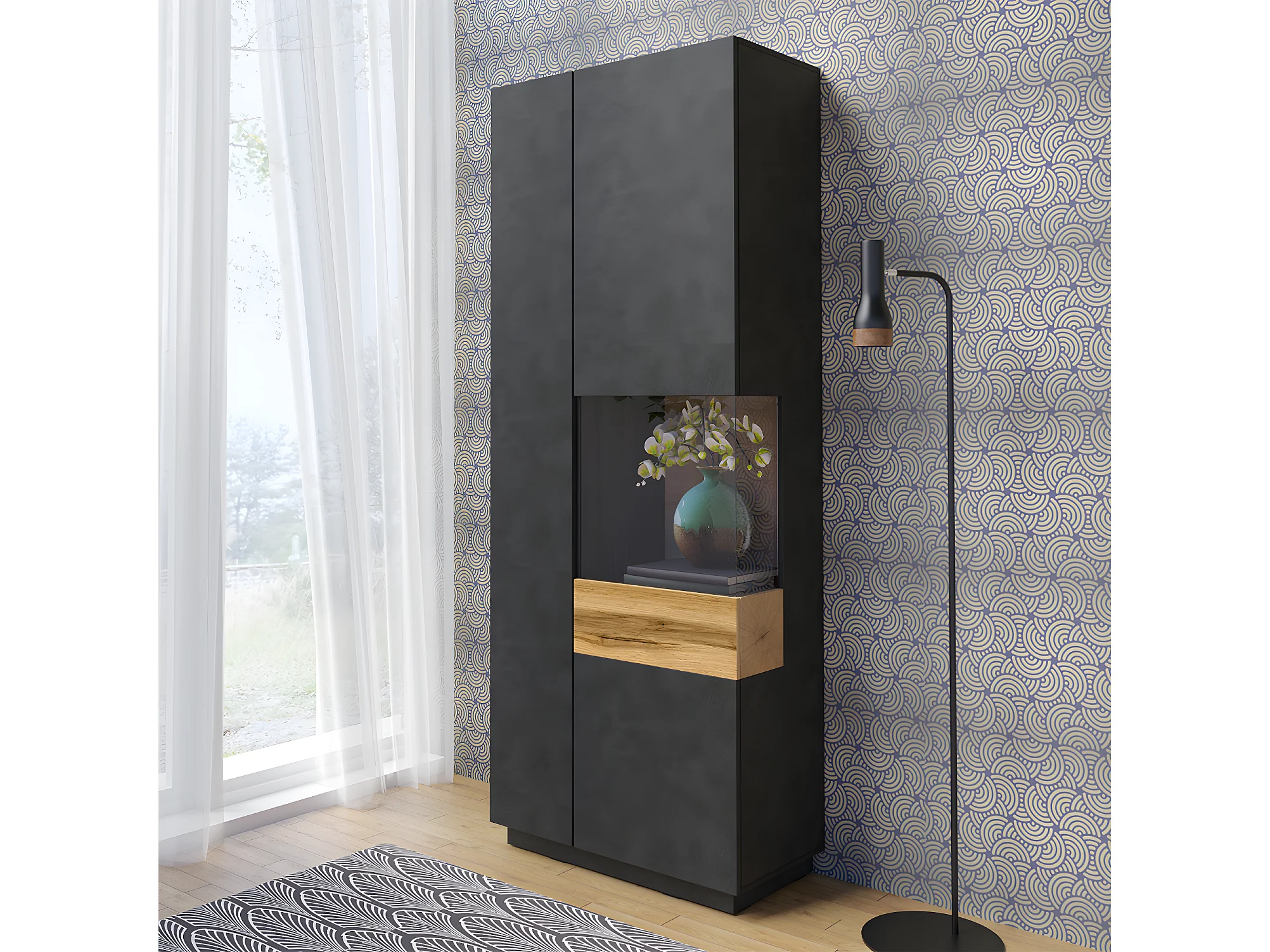 Armário expositor 2 portas Andrea cinzento antracite e madeira 207cm