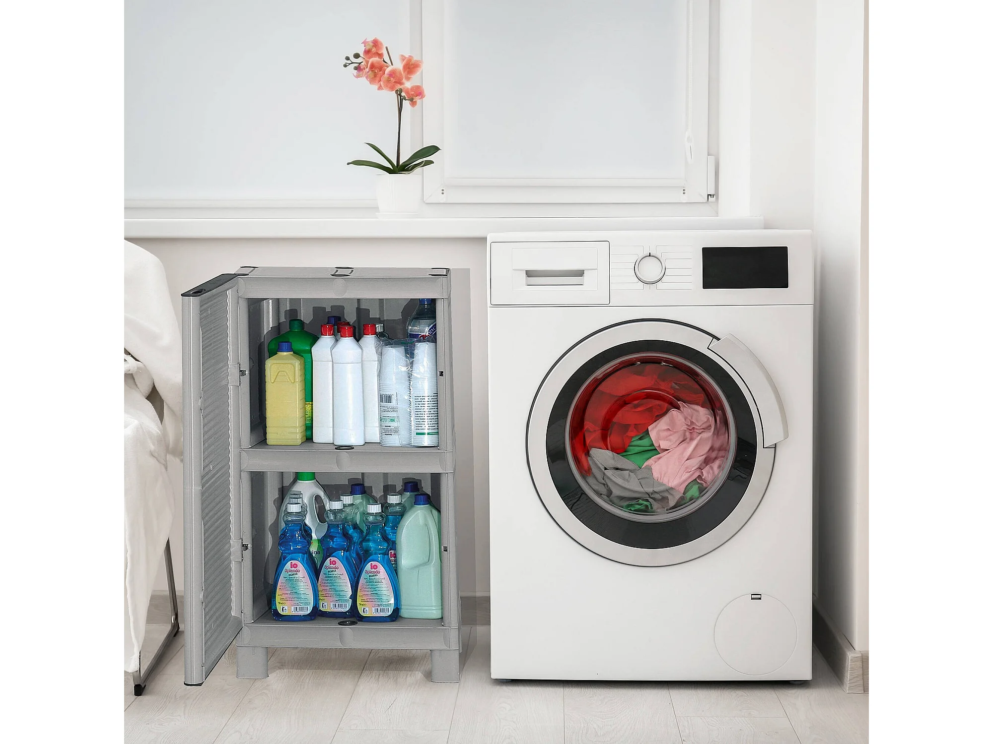 Armário de exterior Dberuatt, Armário exterior de 1 porta, Armário de lavandaria, 100% Made in Italy, 50x39h172 cm, Cinza claro e preto