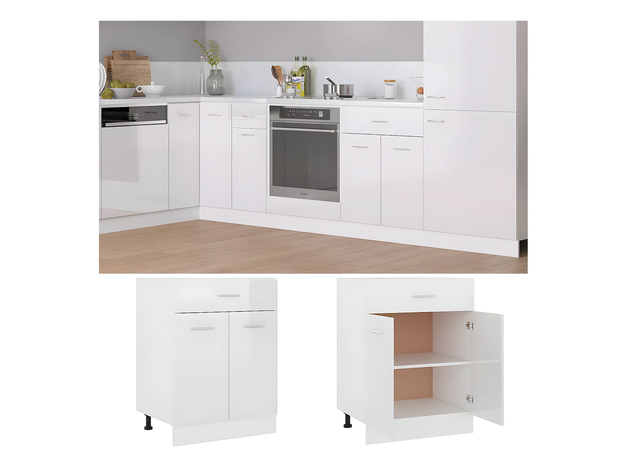 Armário inferior c/ gavetas “Lyon” derivados de madeira branco