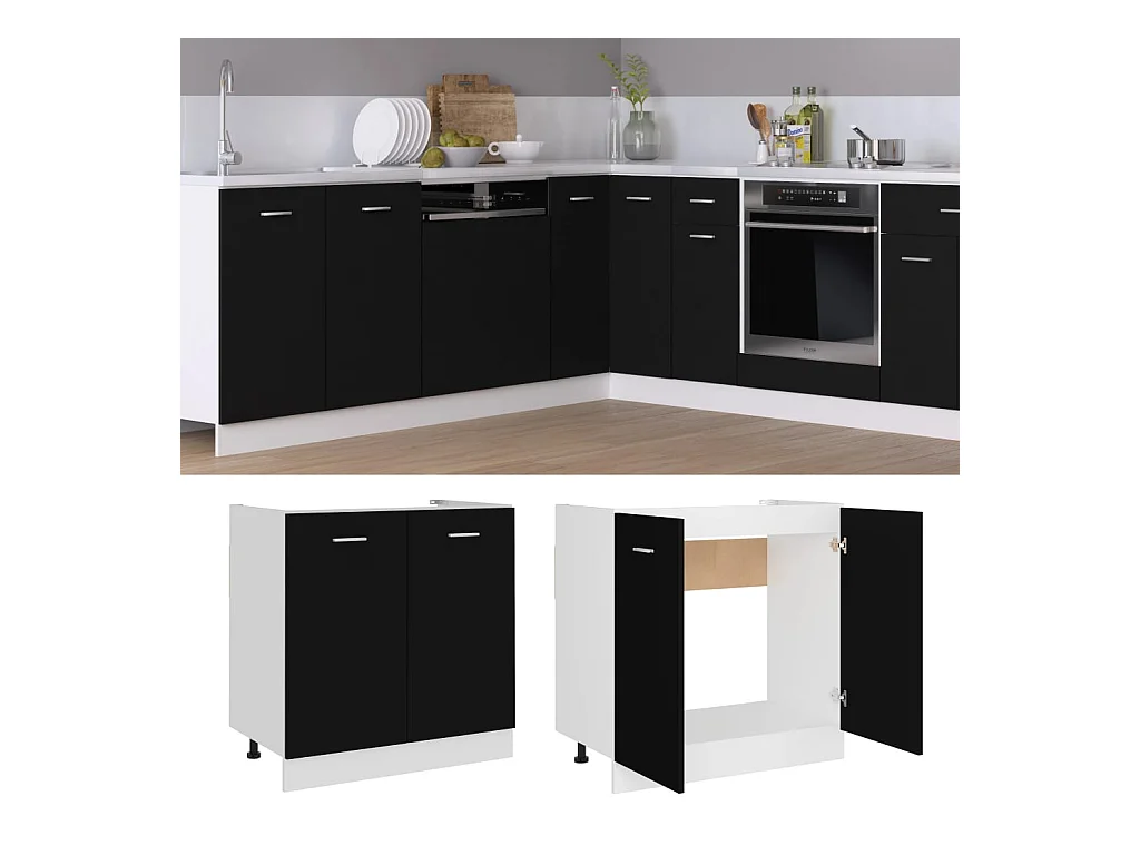 Armário inferior lava-loiça “Lyon” derivados madeira preto