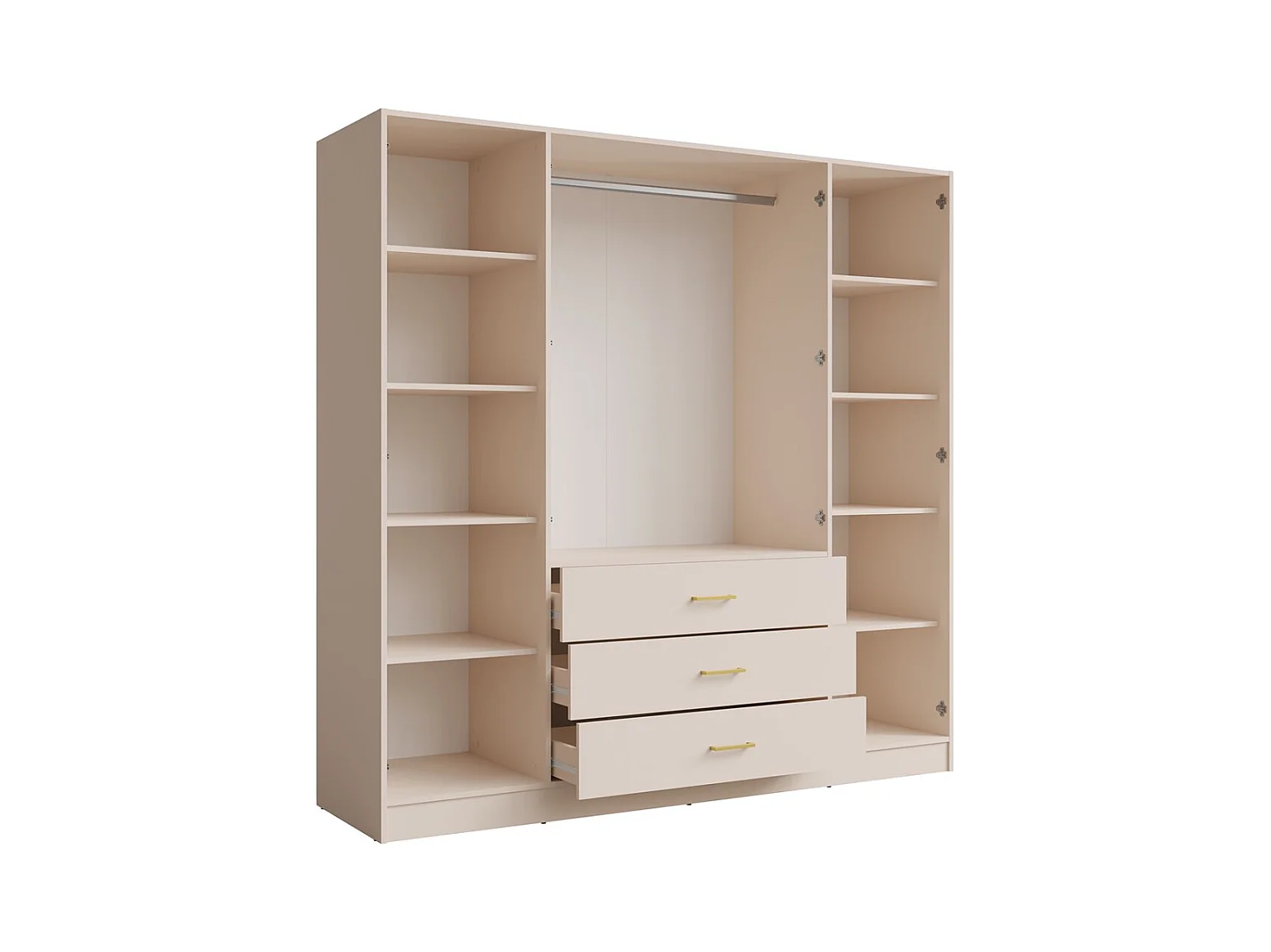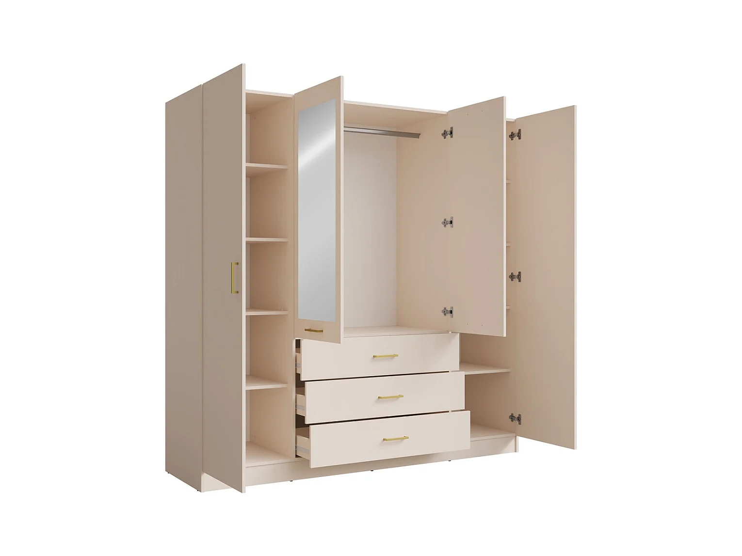 Armário 4 portas AMALIE 179x210x57 cm – Cor bege areia – Com 3 prateleiras adicionais