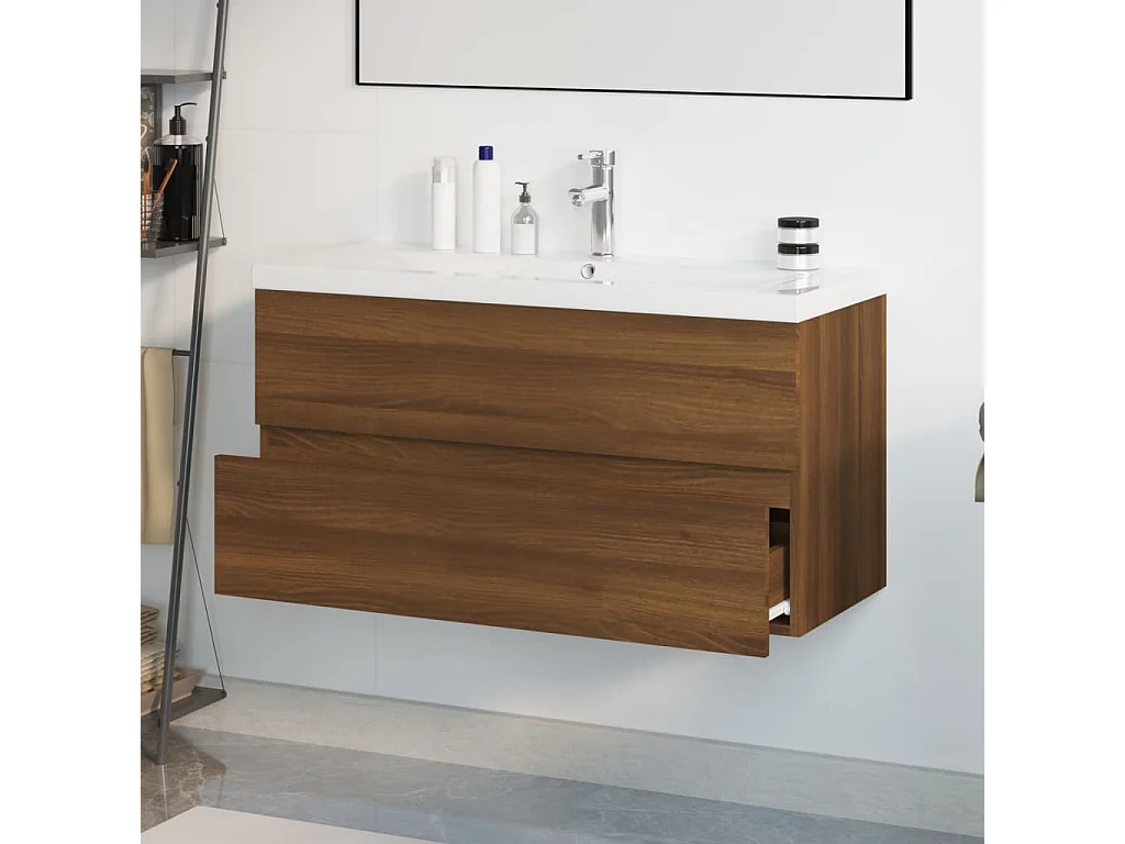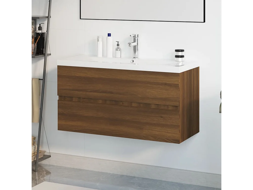 Armário lavatório +lavatório embutido madeira carvalho castanho