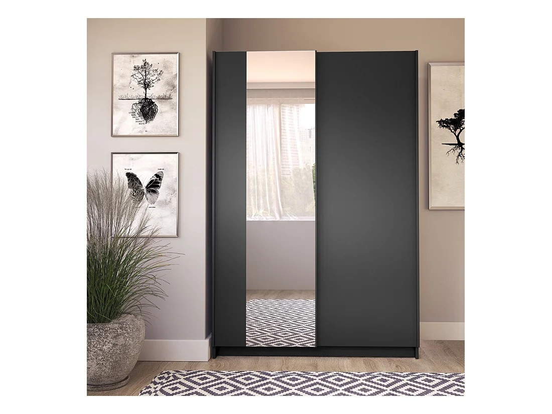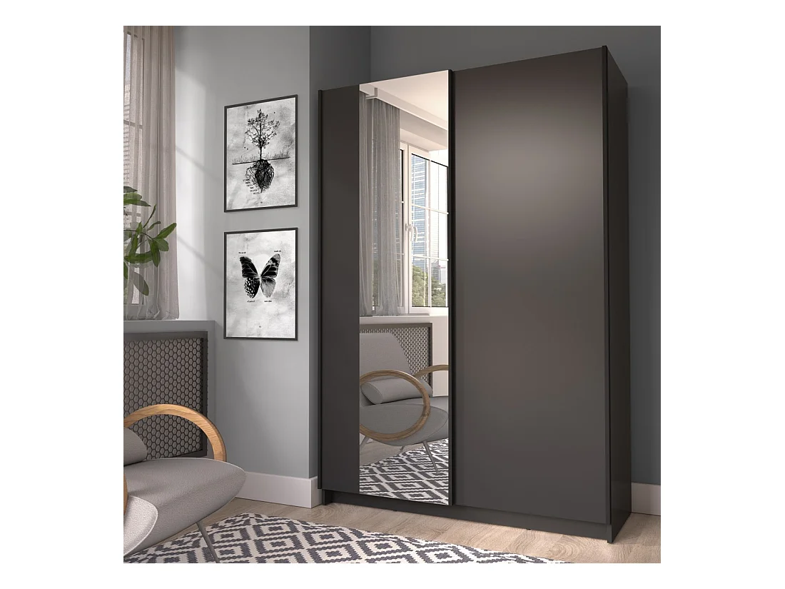 Armário LYSIA 120 cm preto fosco – 2 portas de correr com espelho