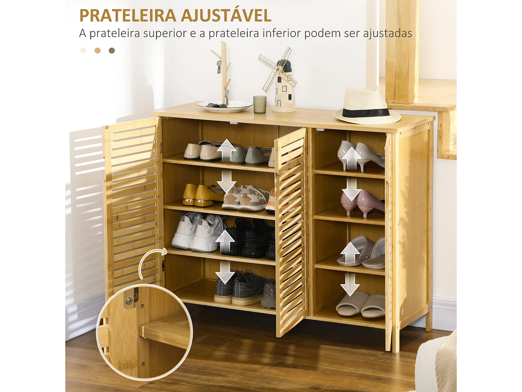Sapateira moderna com 5 compartimentos, armário de armazenamento com 2 portas, cor madeira