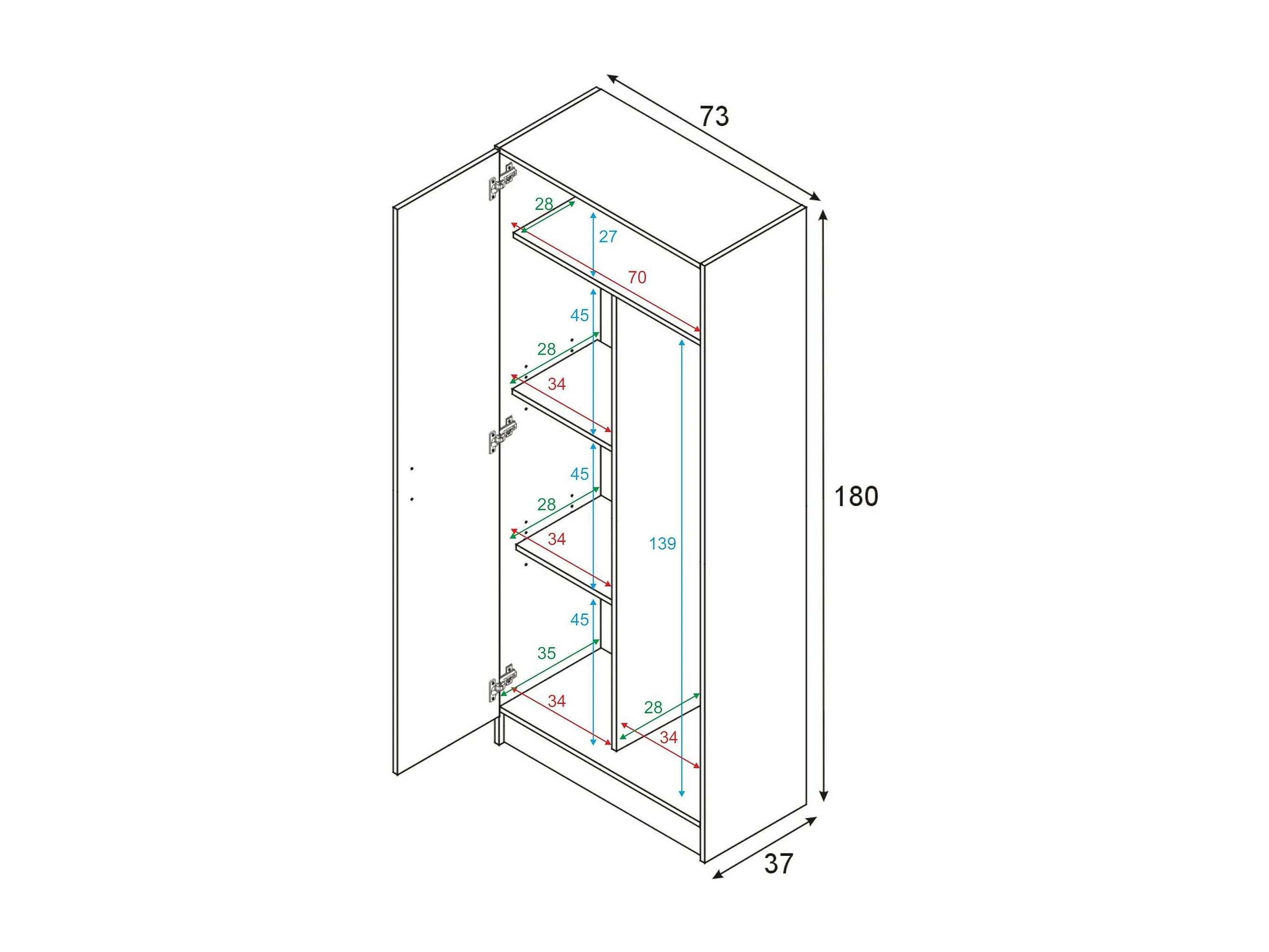 Armário multiuso Charleston, Armário para vassouras com 2 portas, Sapateira com prateleiras, Armário para vassouras, cm73x37h180 cm, Carvalho