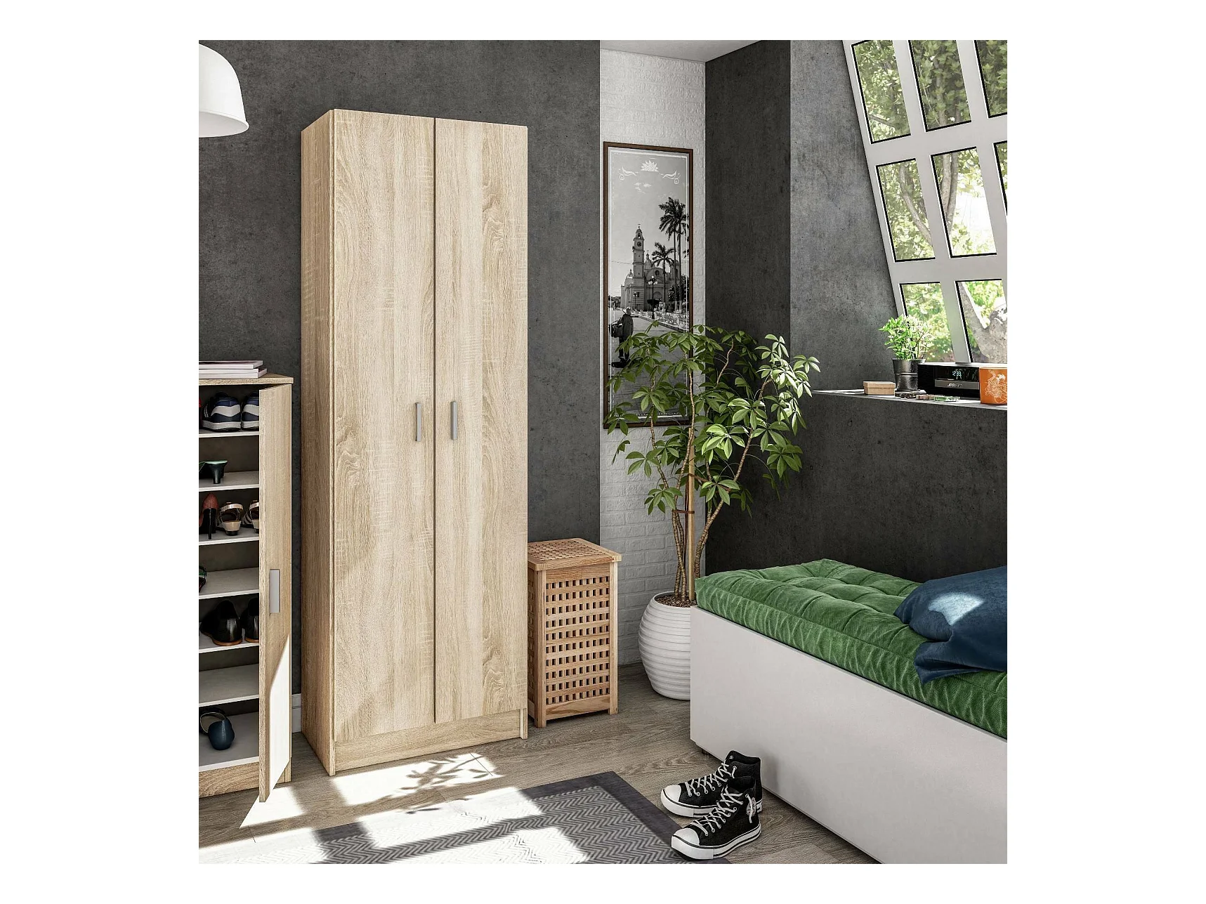Armário multiuso Ddeiol, Armário porta-vassouras multifuncional, guarda-roupa 2 portas, 78x35h190 cm, Carvalho