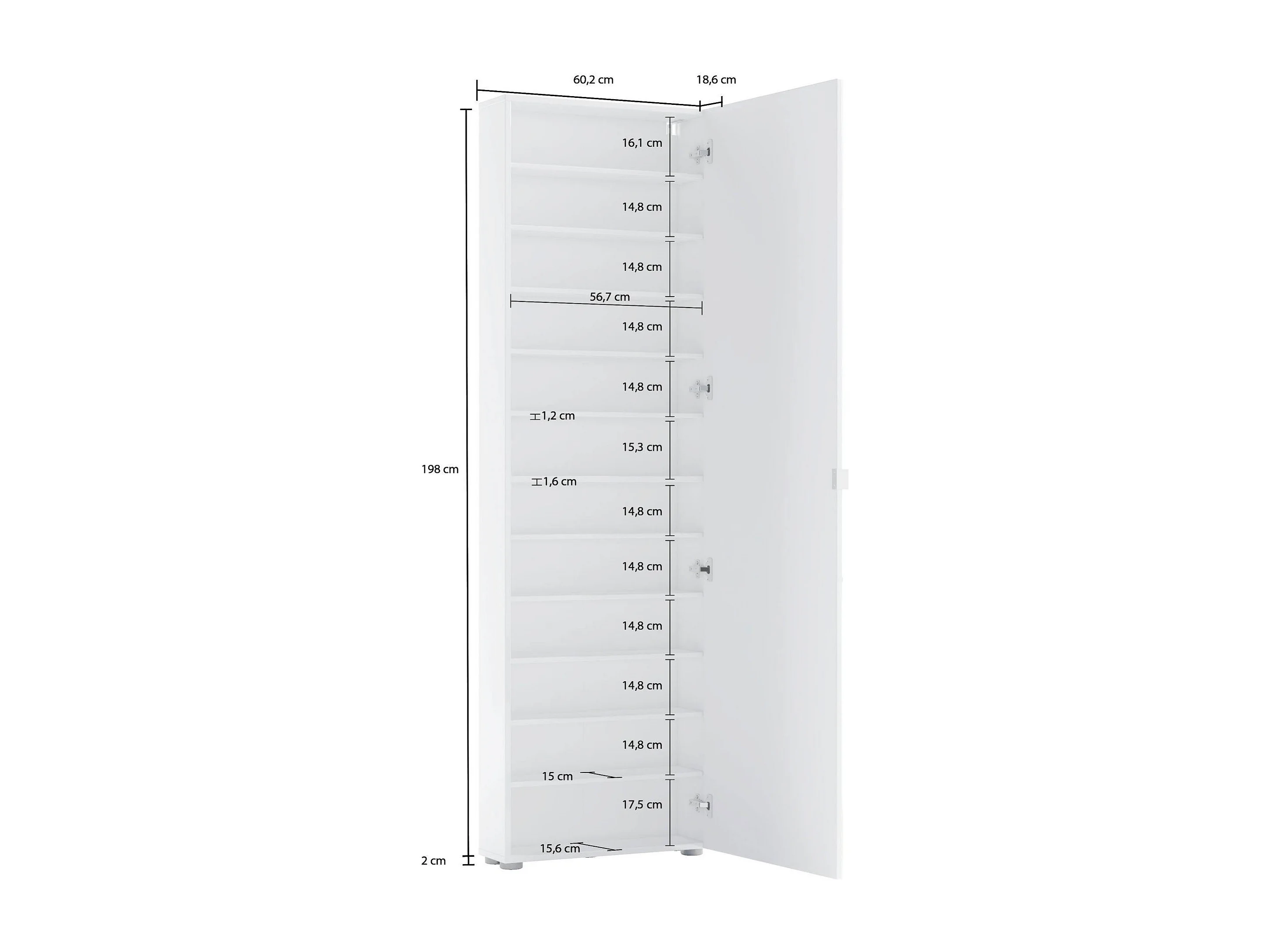Armário multiusos 1 porta Dfiordilin, Armário multifuncional, Sapateira, Armário para sapatos, Fabricado em Itália, 60x19h200 cm, Branco brilhante