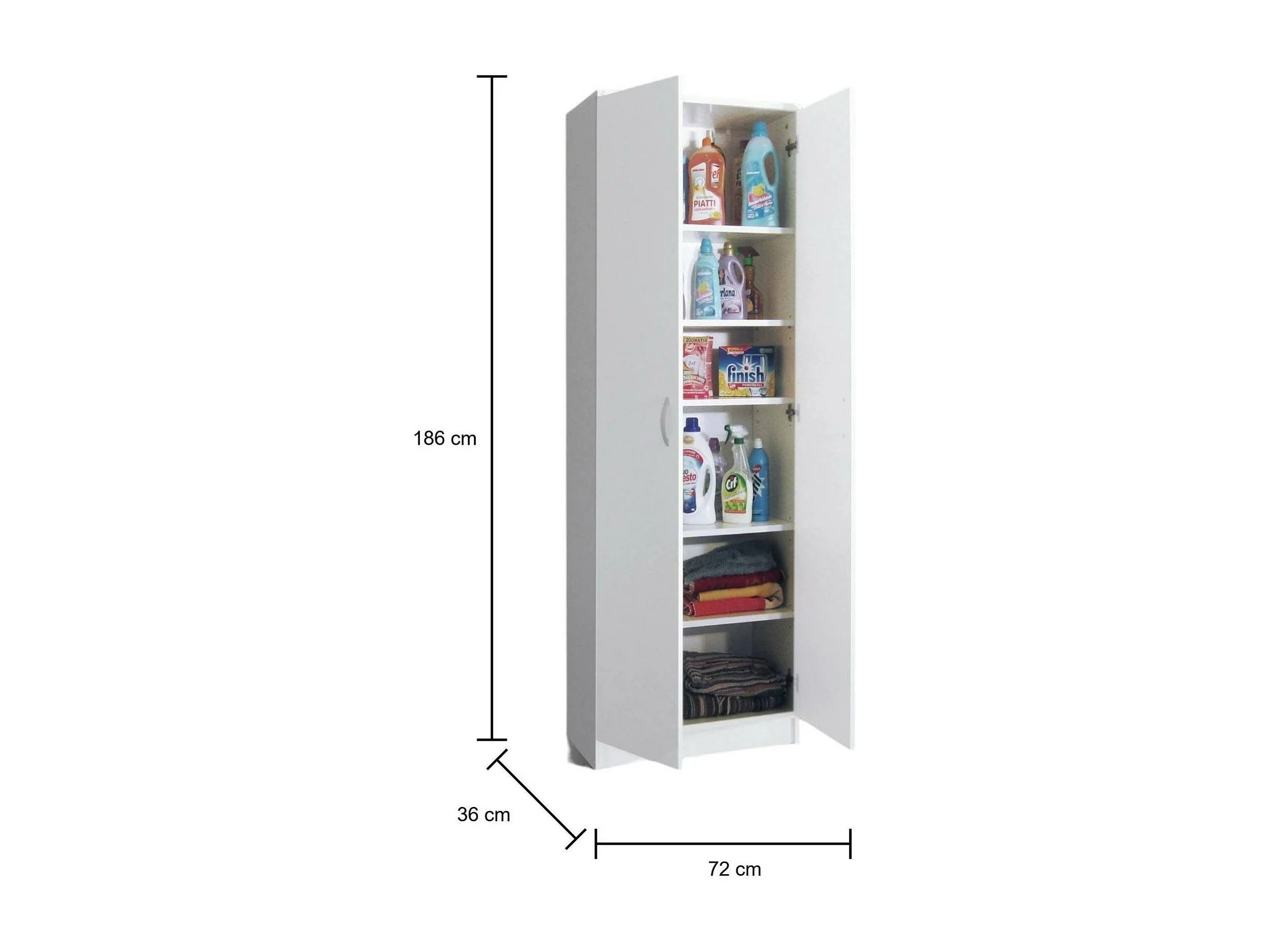 Armário multiusos Dradic 2 portas, Armário multifuncional, Sapateira, Armário de vassoura, Fabricado em Itália, 72x36h186 cm, Branco