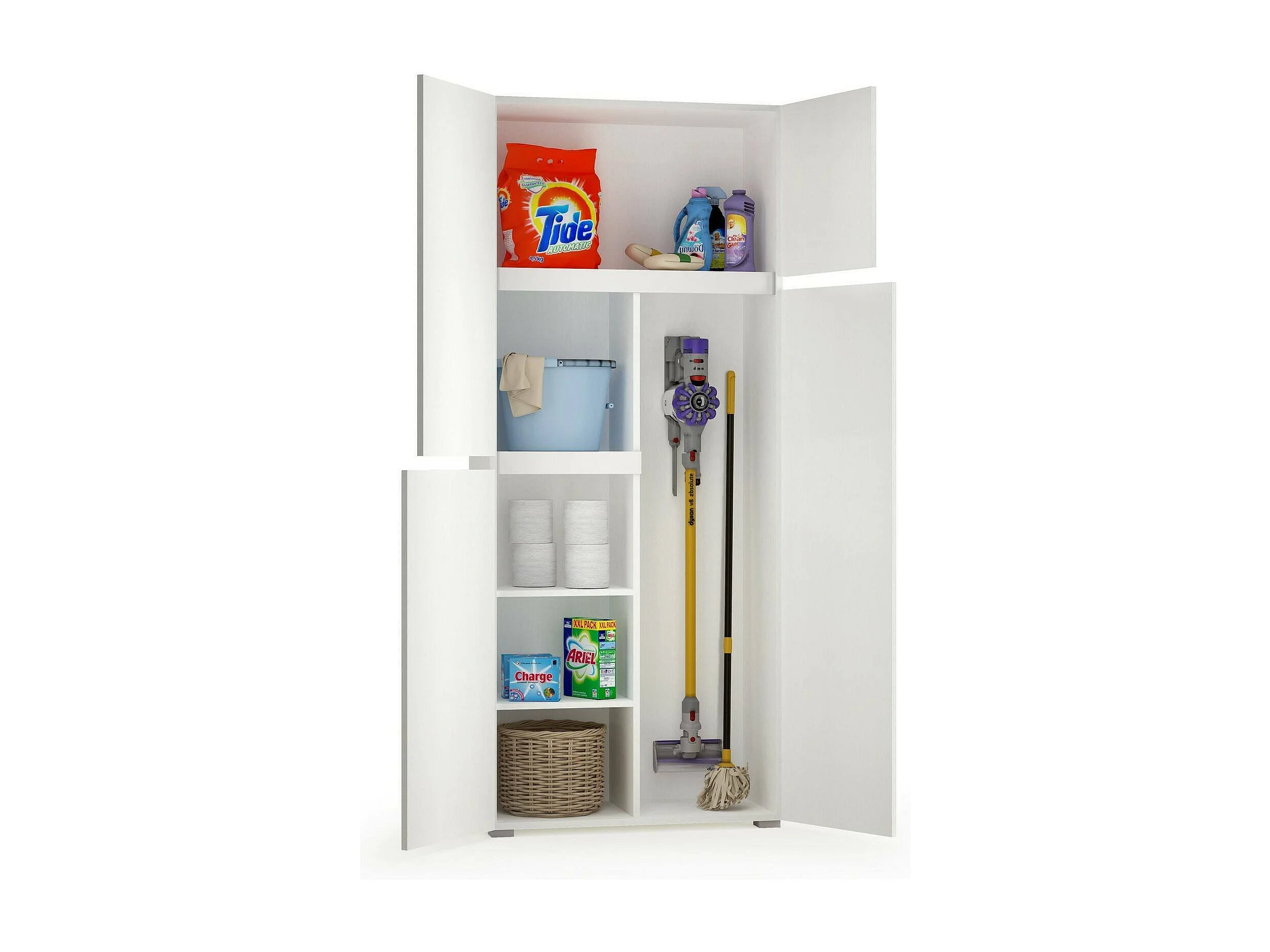 Armário multiusos grande Dbandinell, Armário multiusos com 4 portas, Sapateira, Armário que poupa espaço, 100% Fabricado em Itália, 80x37h195 cm, Branco