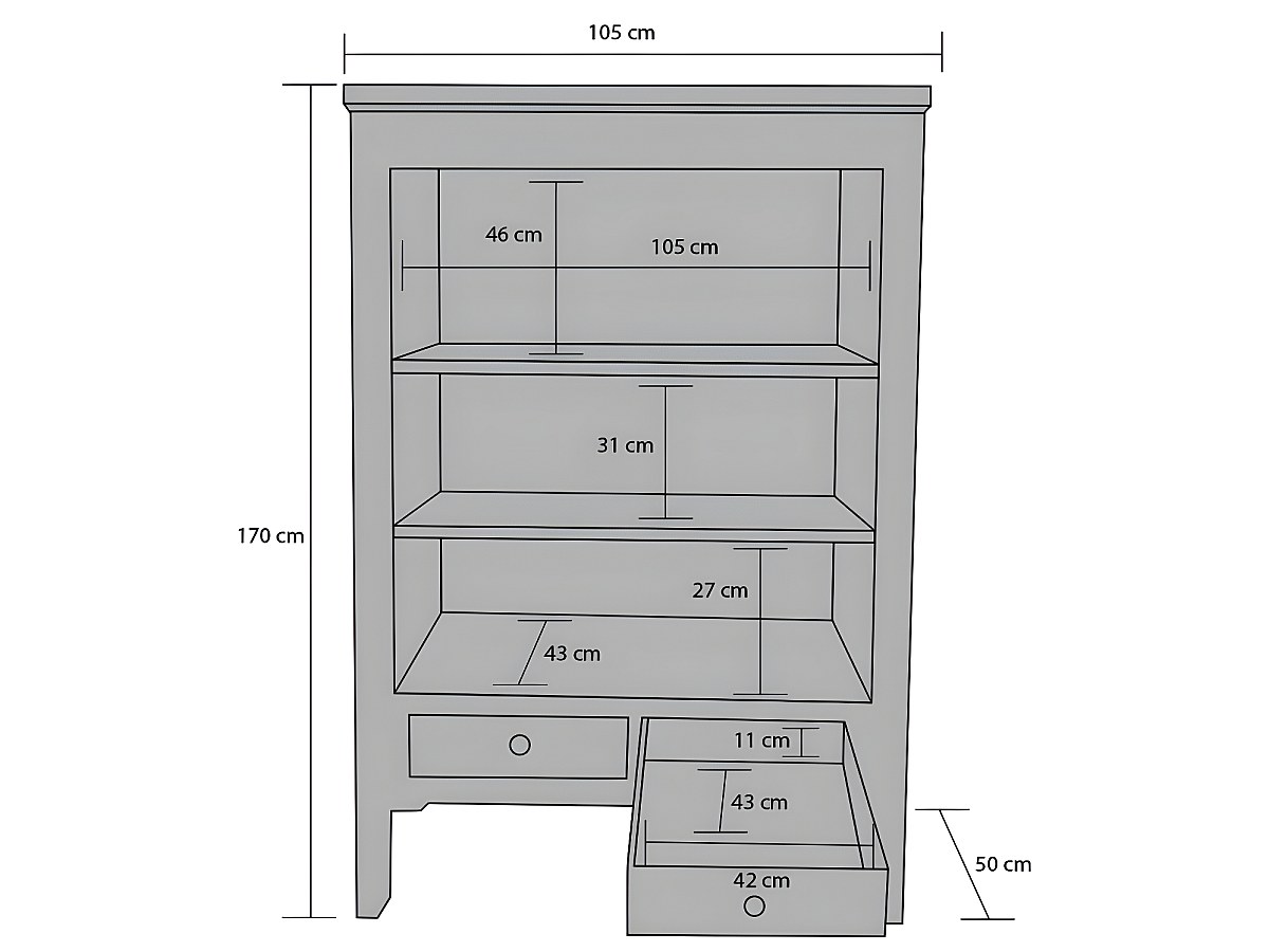 Este armário é feito em madeira de abeto, uma madeira robusta e elegante.