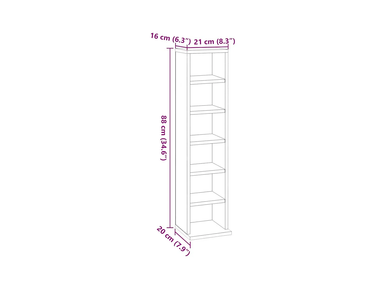 Armário para CD 21x20x88 cm madeira processada carvalho sonoma