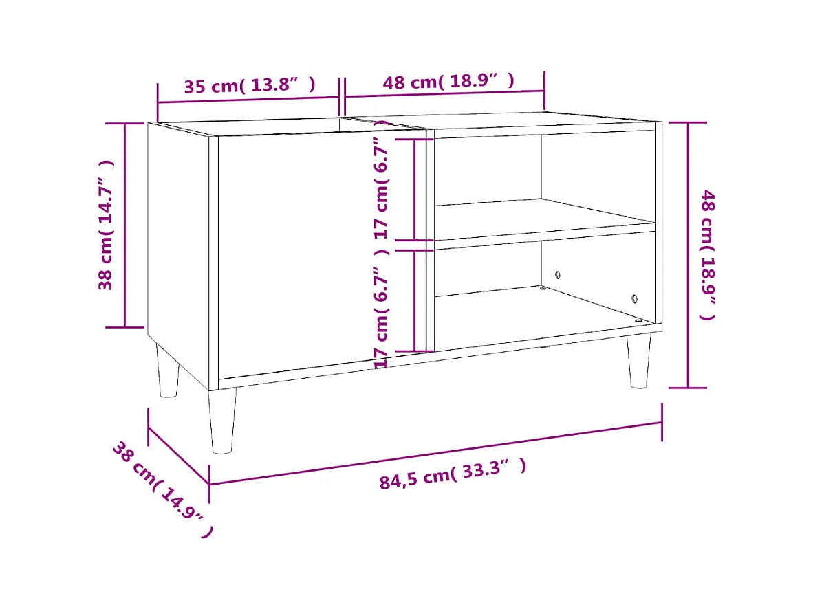 Armário p/ discos 84,5x38x48cm deriv. madeira carvalho castanho