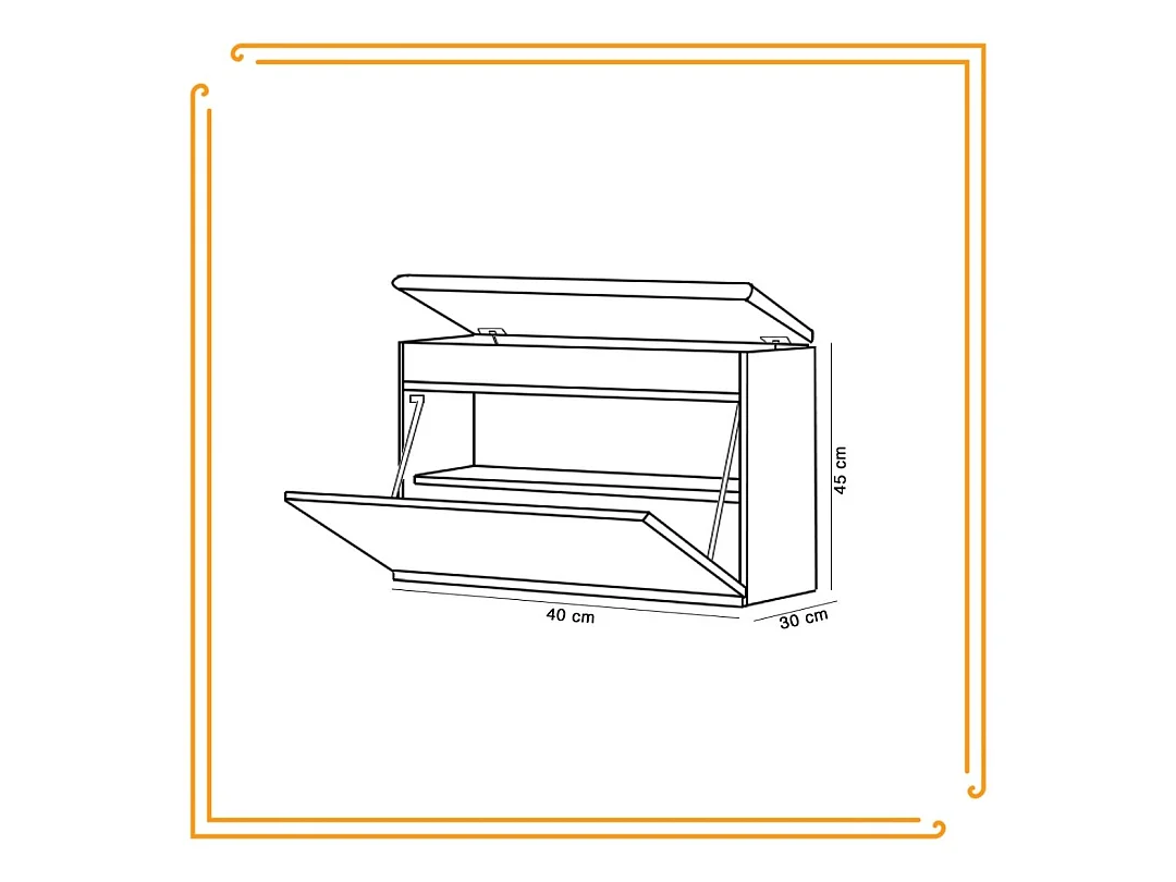 Sapateira 80x35x80cm com portas de batente, espelho e ganchos, corpo em branco brilhante