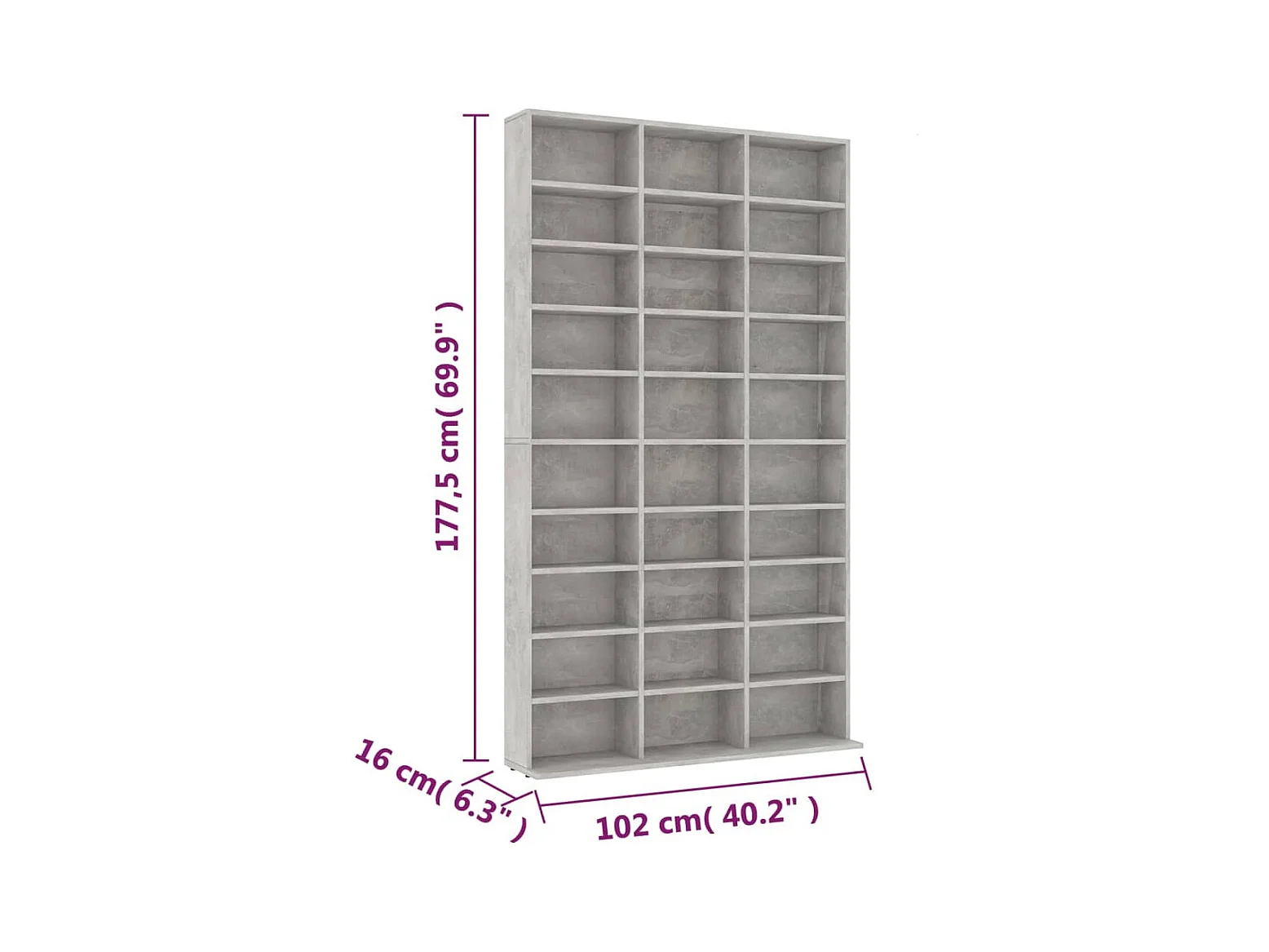 Armário para CD Cinza concreto 102x16x177,5 cm Madeira trabalhada