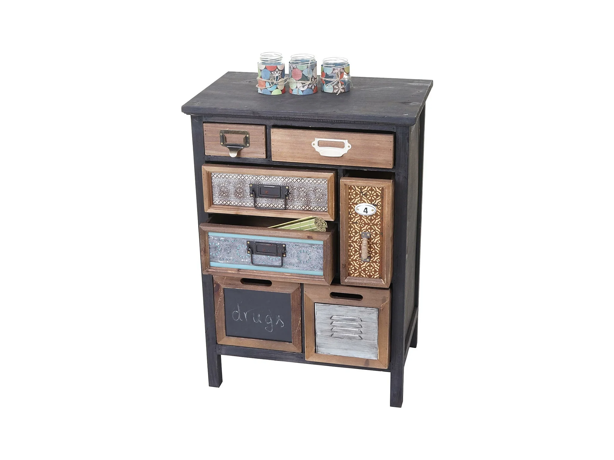 Cômoda com 9 gavetas, estilo boêmio, 100 * 86,5 * 30 cm. Tecido não tecido + madeira + estrutura de ferro