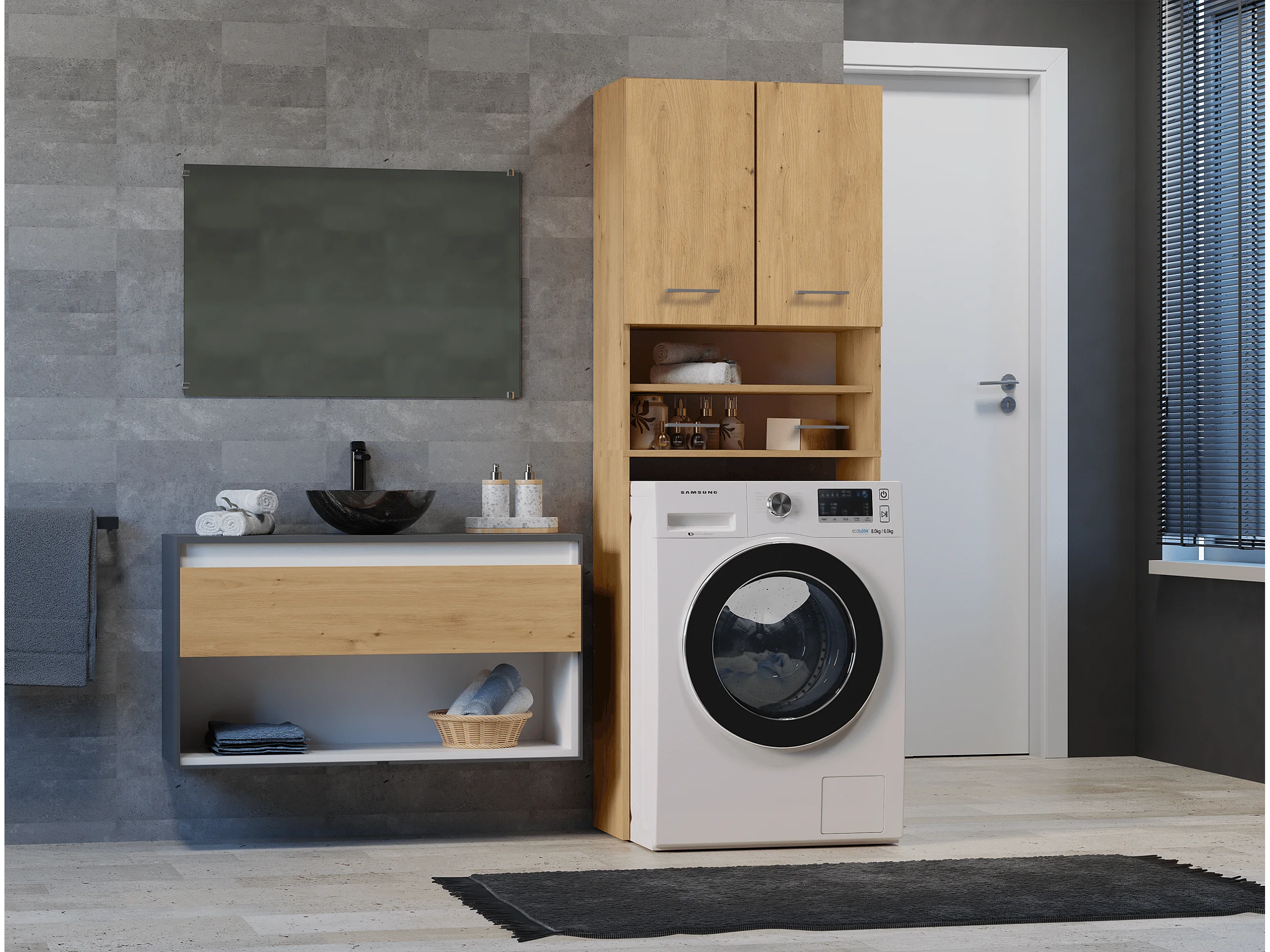 Armário para máquina de lavar, 30 x 64 x 180 cm, carvalho artesanal