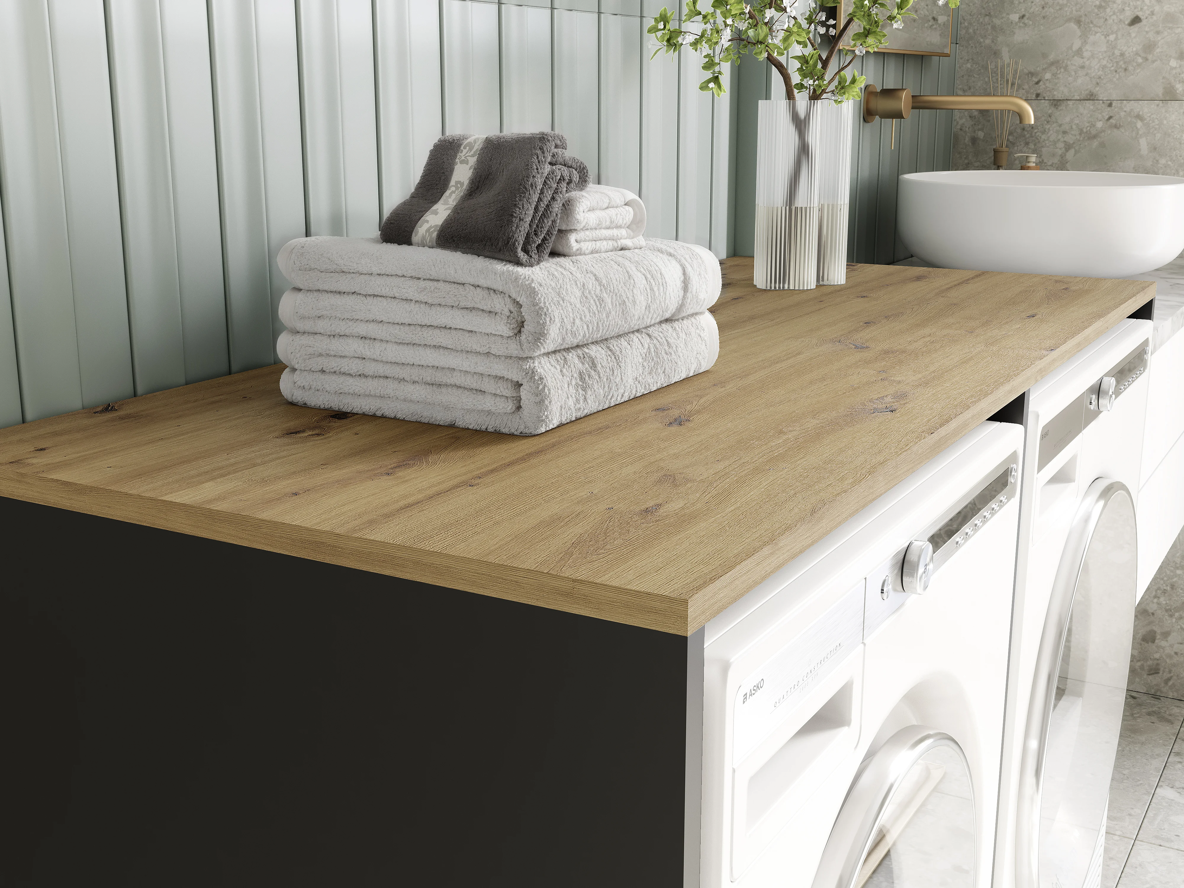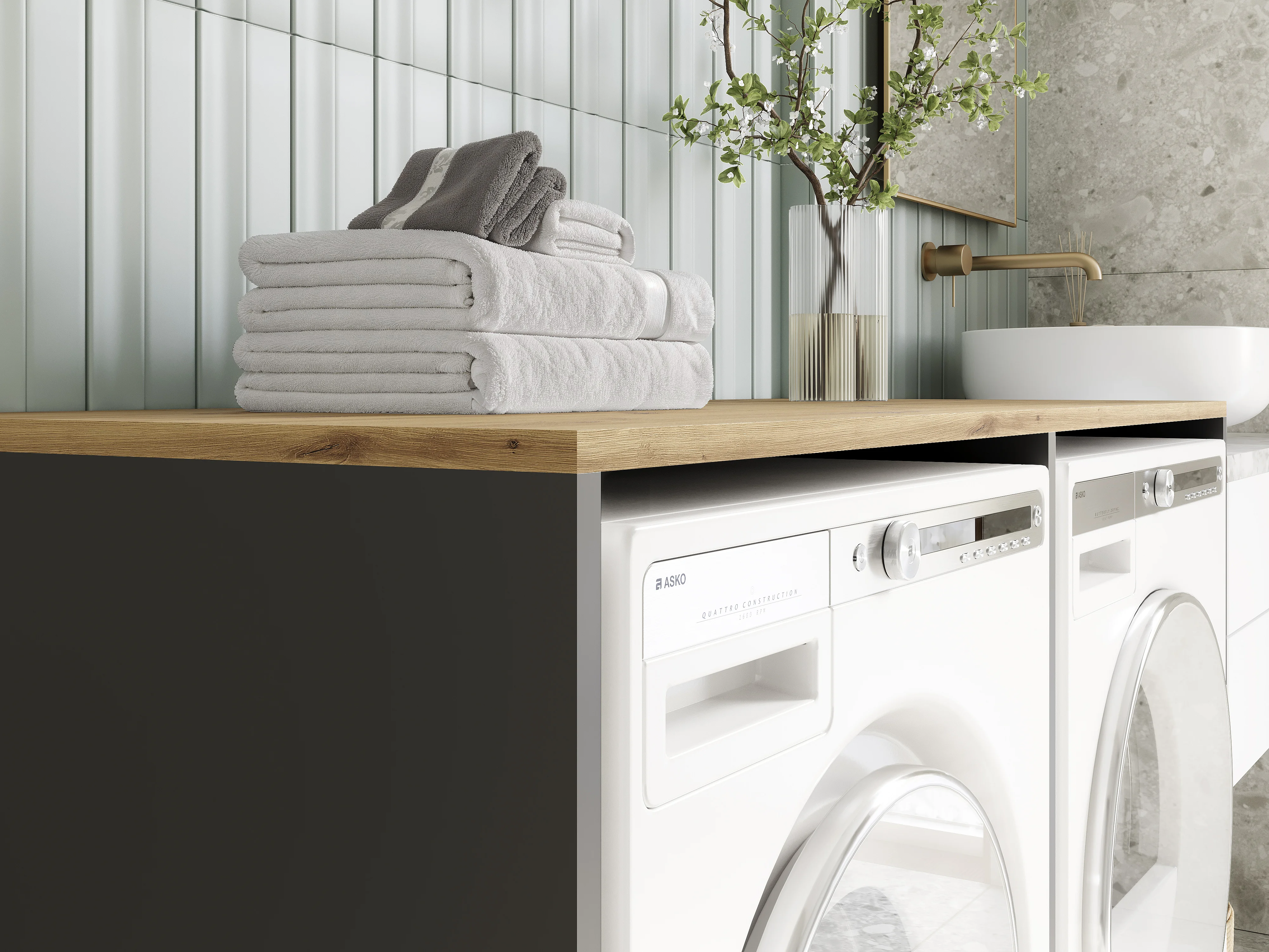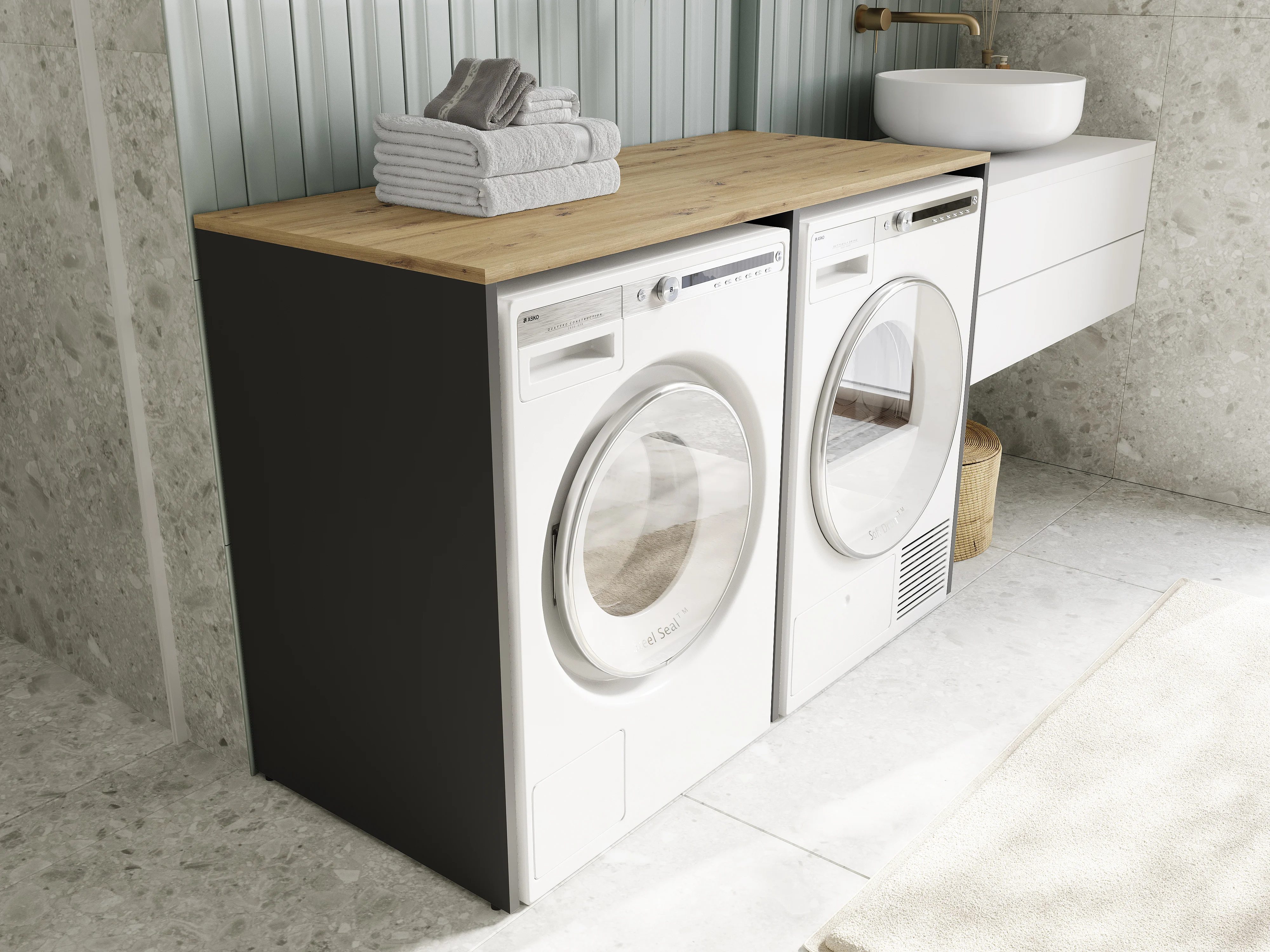 Armário para máquina de lavar de 130 cm, compatível com lavadora e secadora, com espaço de arrumação, armário superior