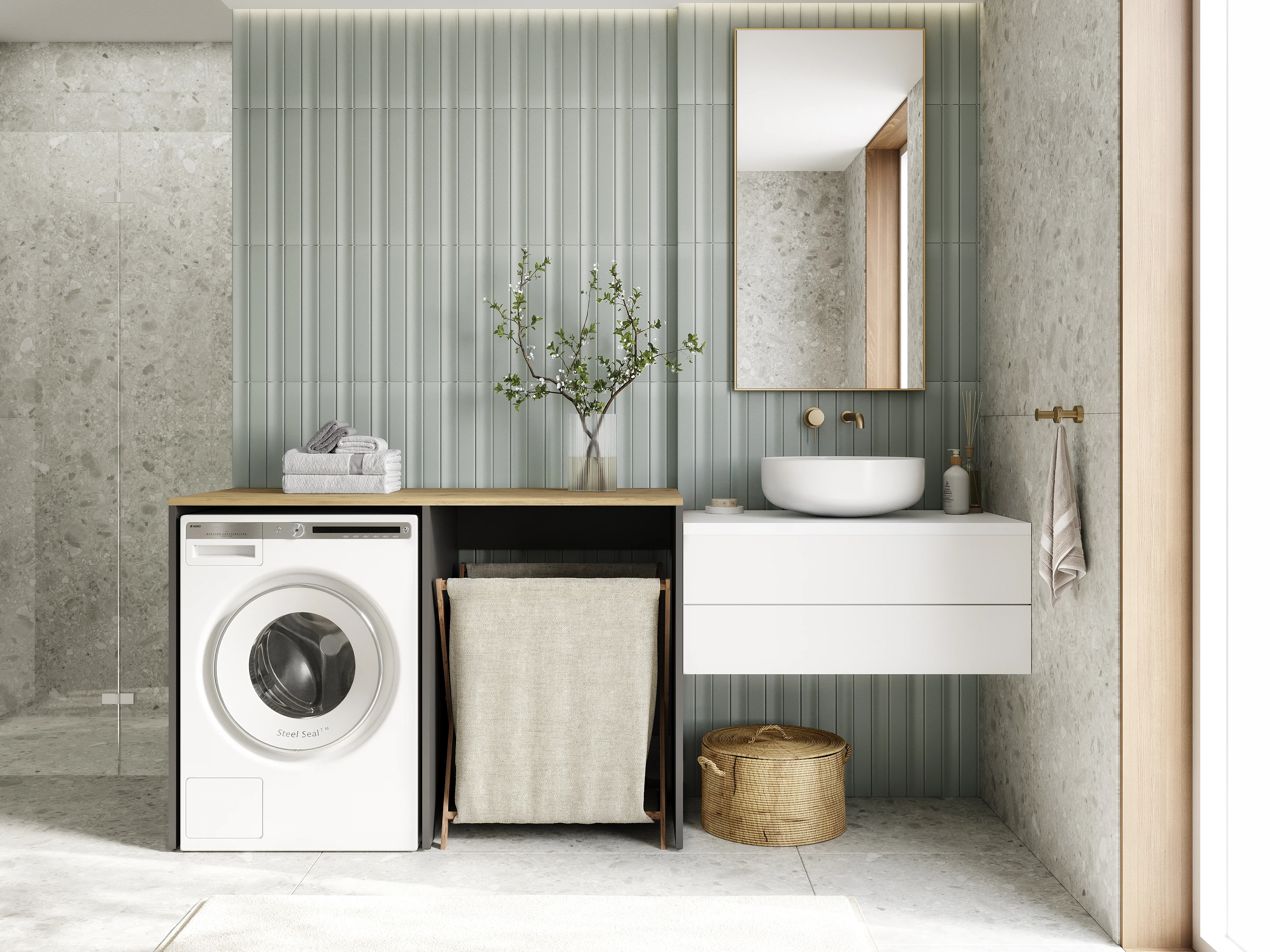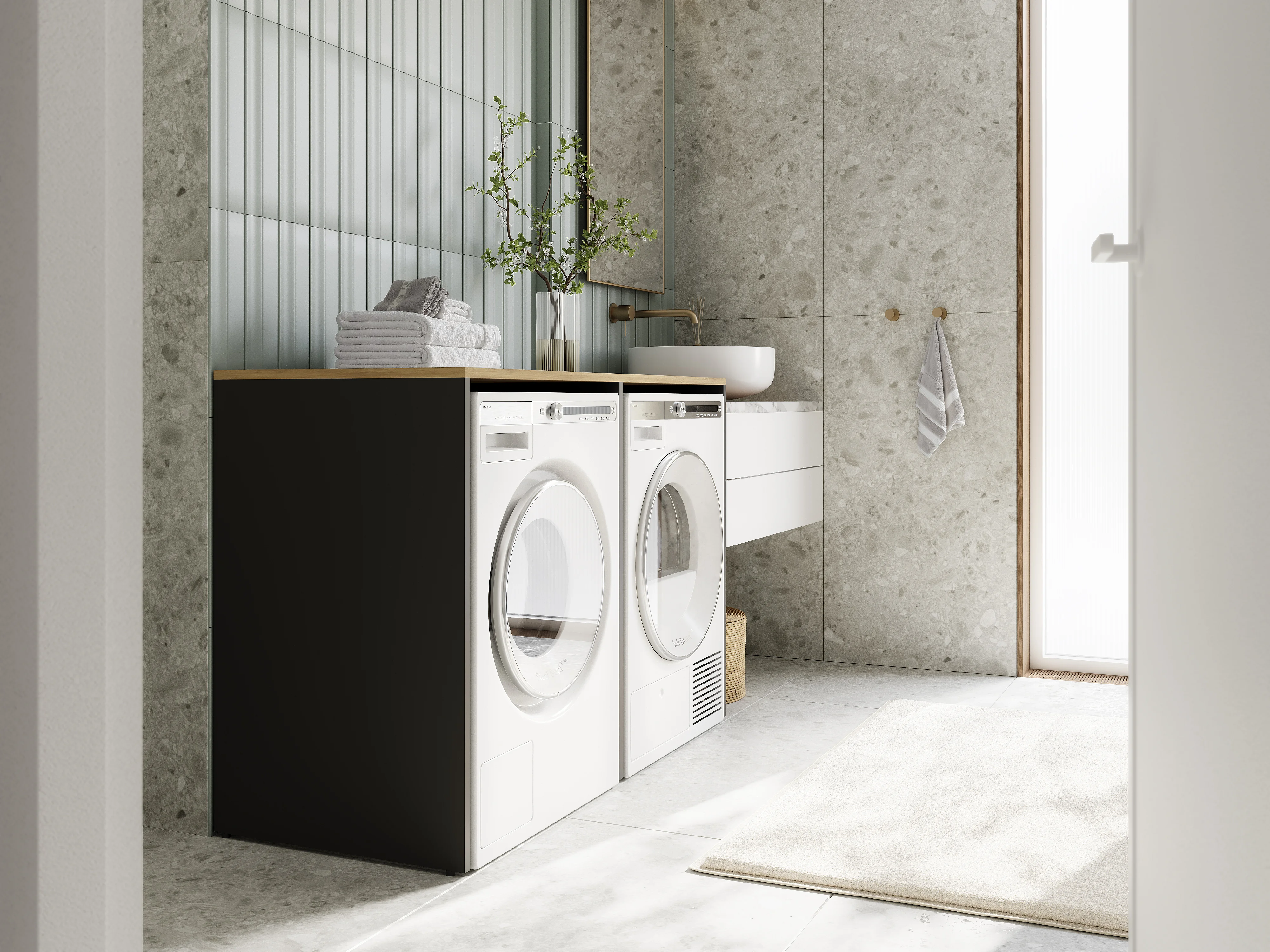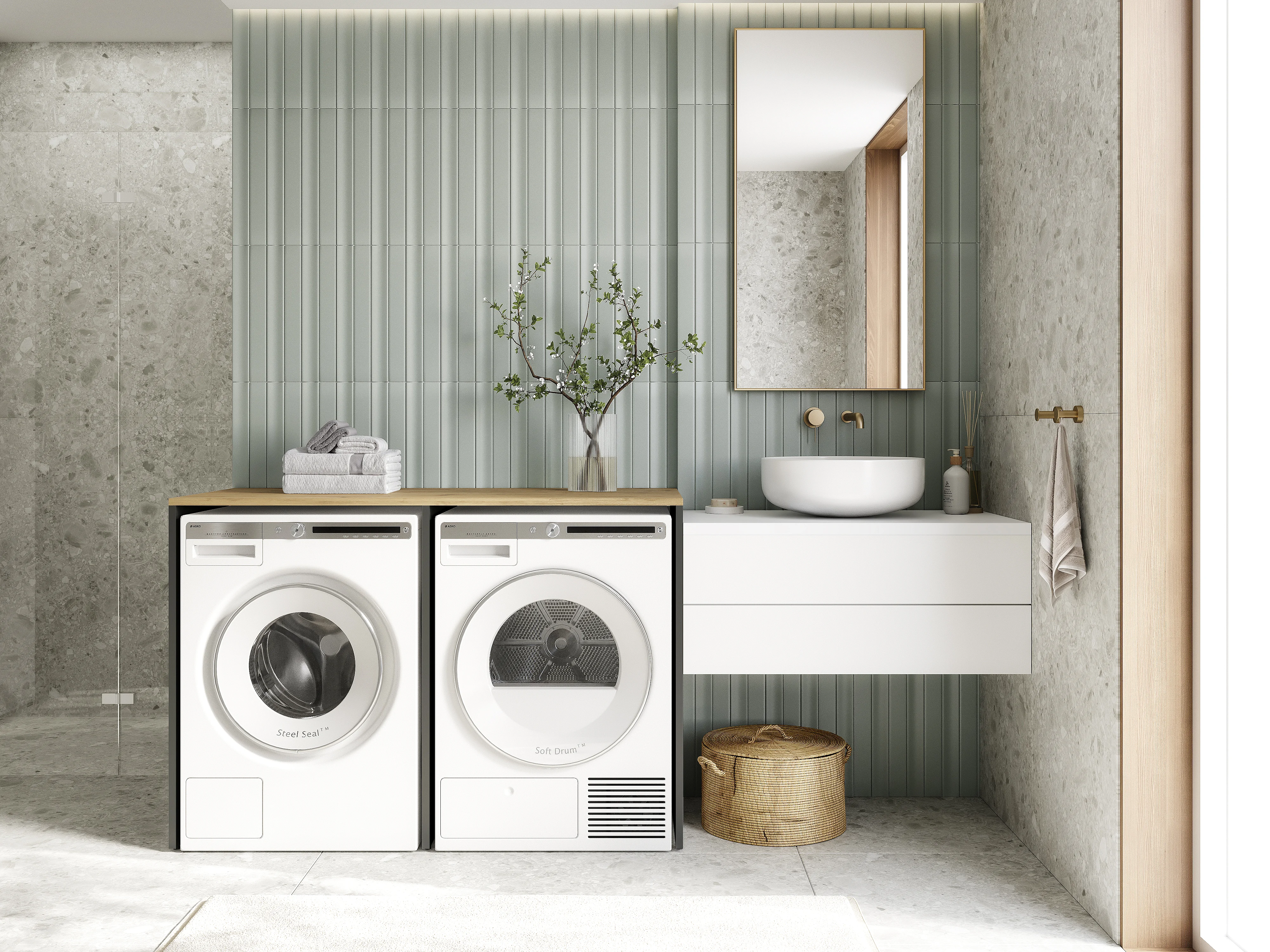 Armário para máquina de lavar de 130 cm, compatível com lavadora e secadora, com espaço de arrumação, armário superior