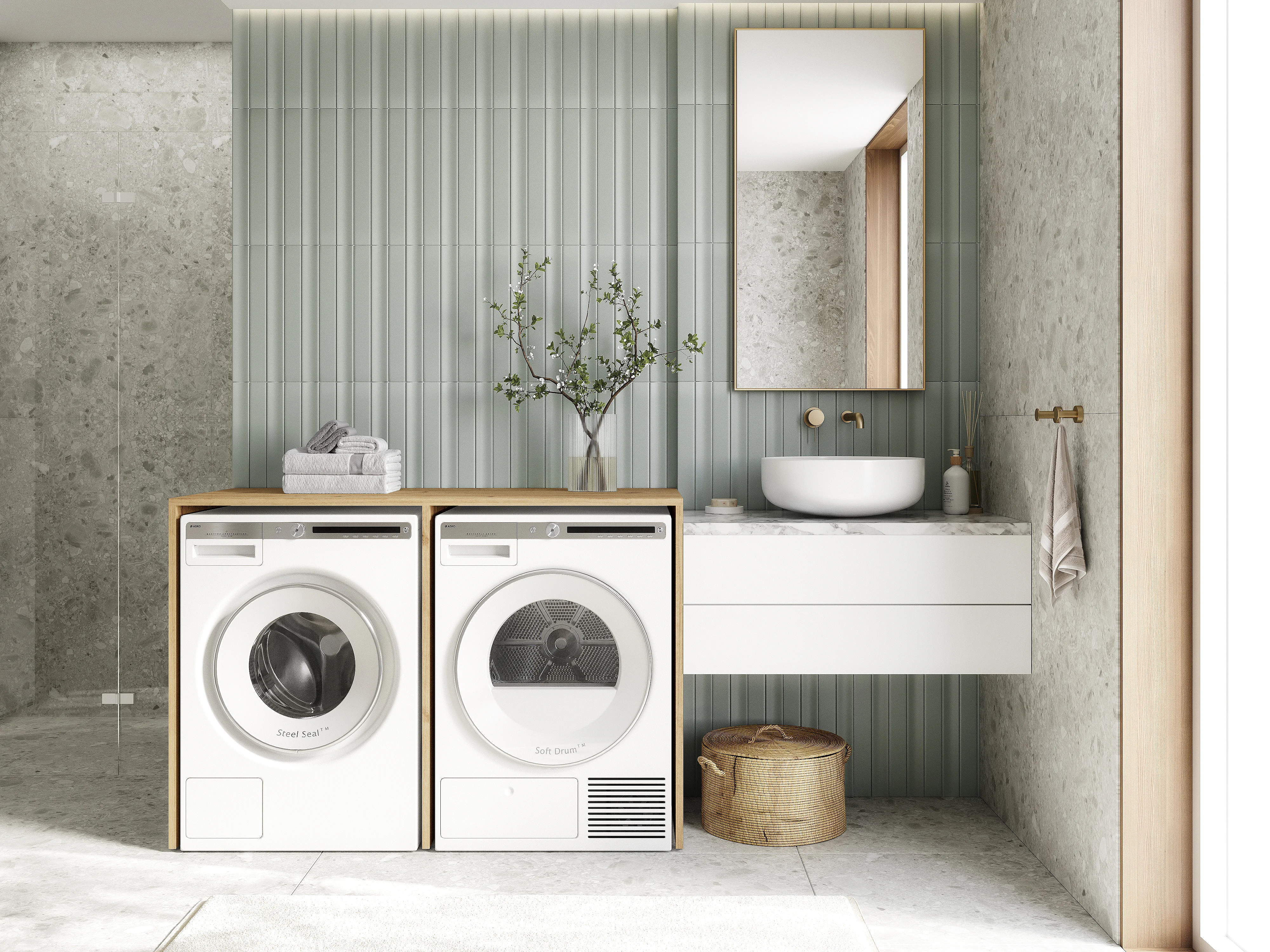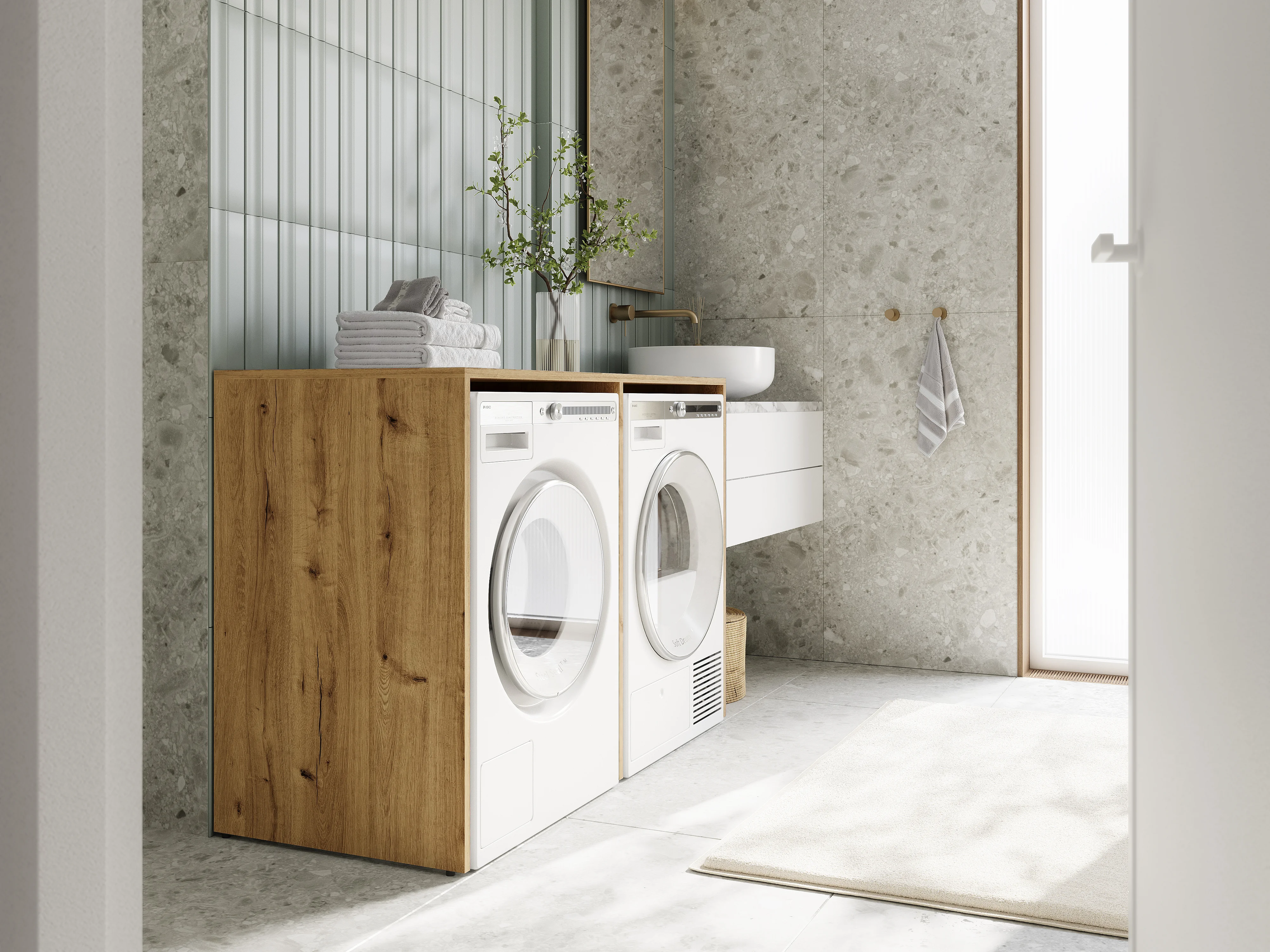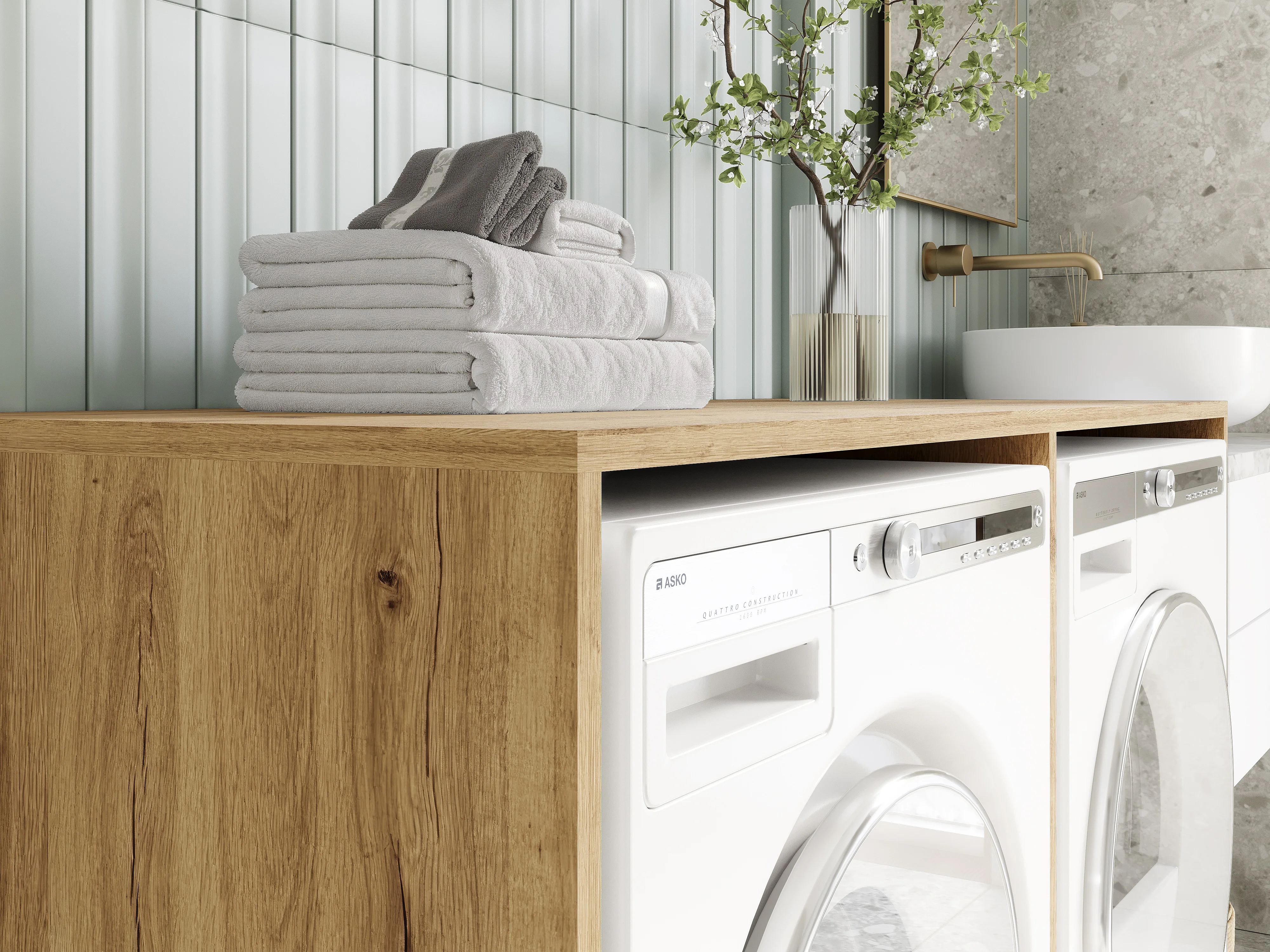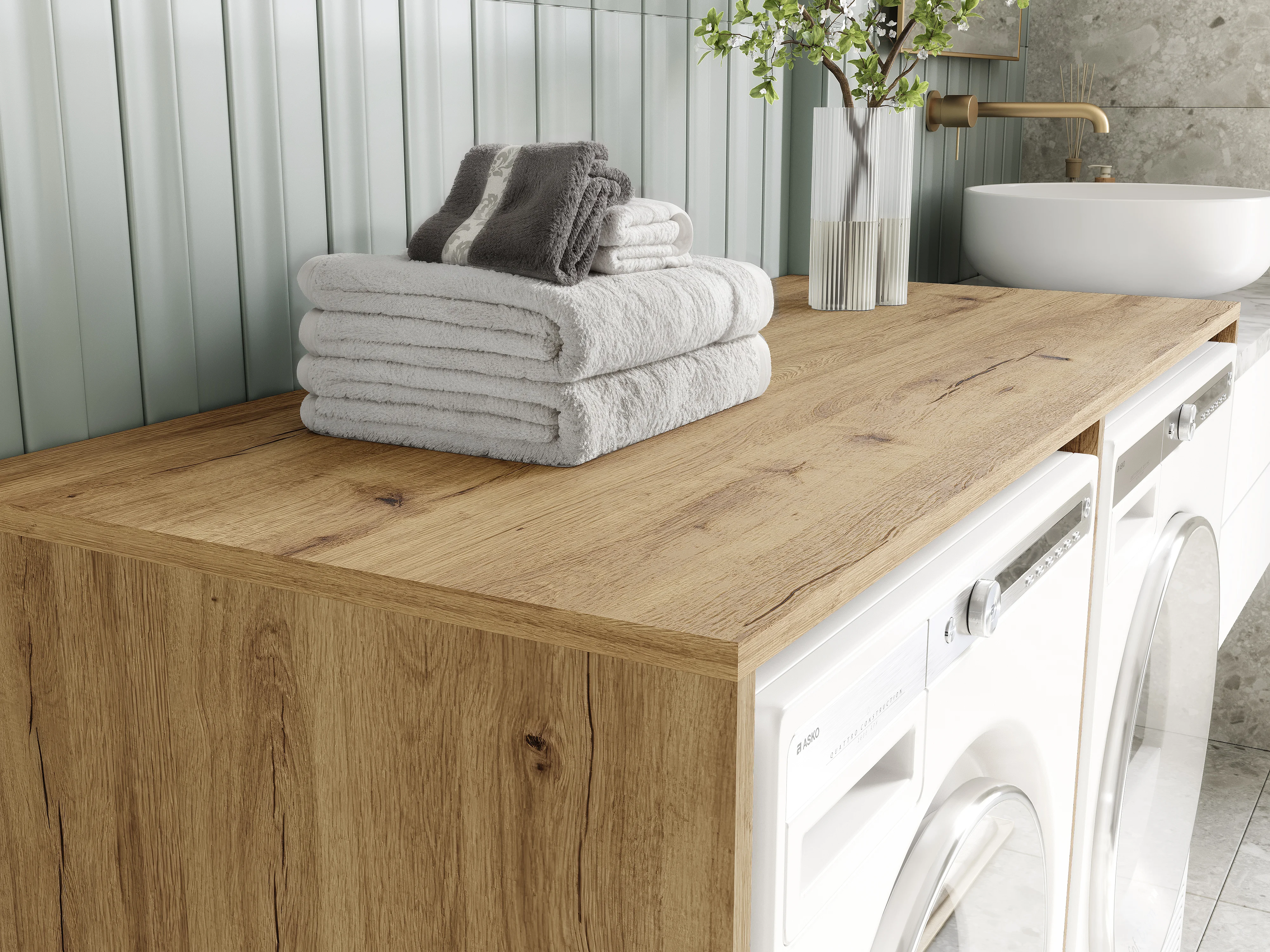 Armário para máquina de lavar de 130 cm, compatível com lavadora e secadora, com espaço de arrumação, armário superior