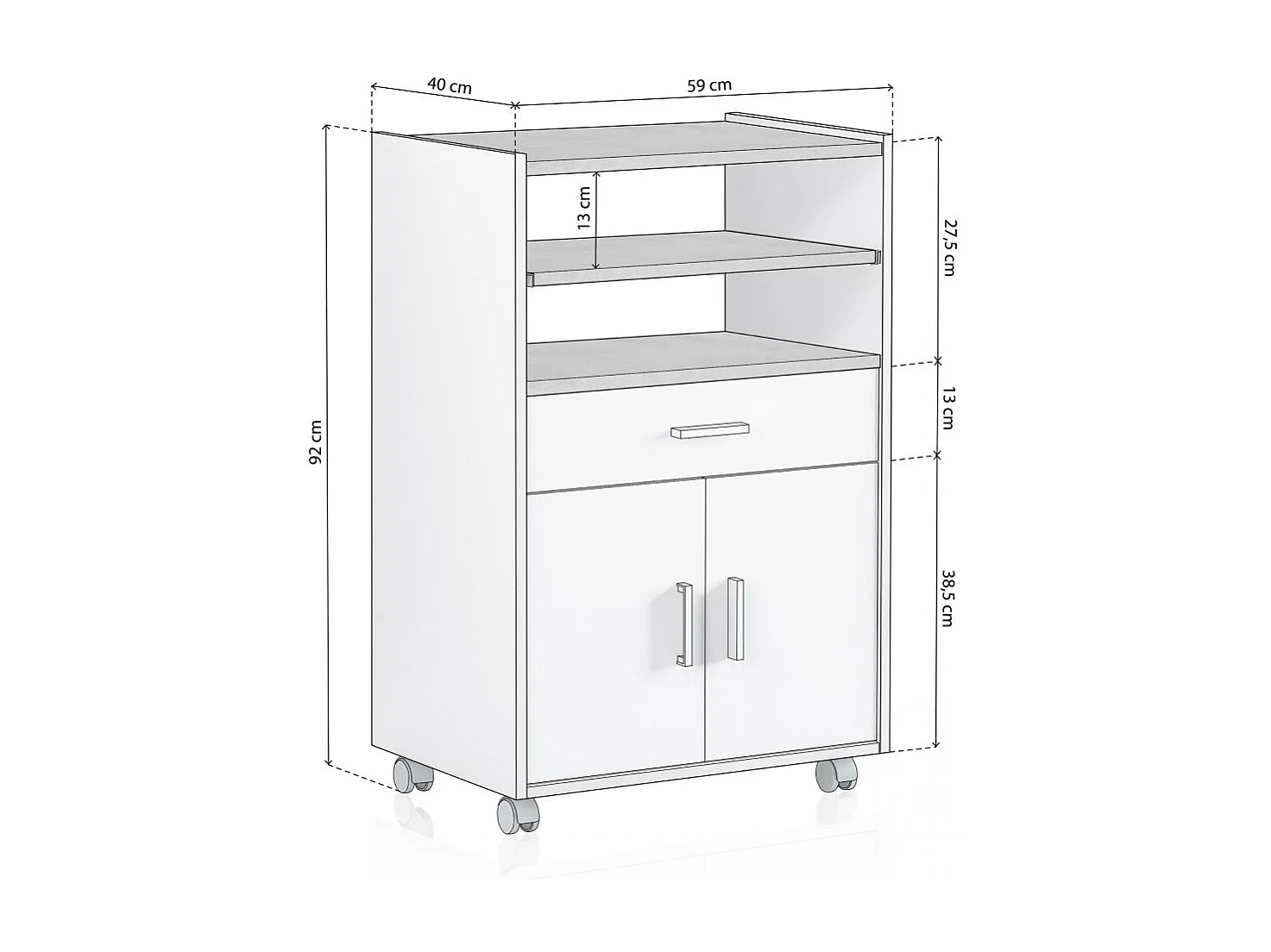 Cômoda de escritório Buc Fizz, 2 gavetas, 1 oca, carvalho Sonoma, cinza, 40x67x45 cm