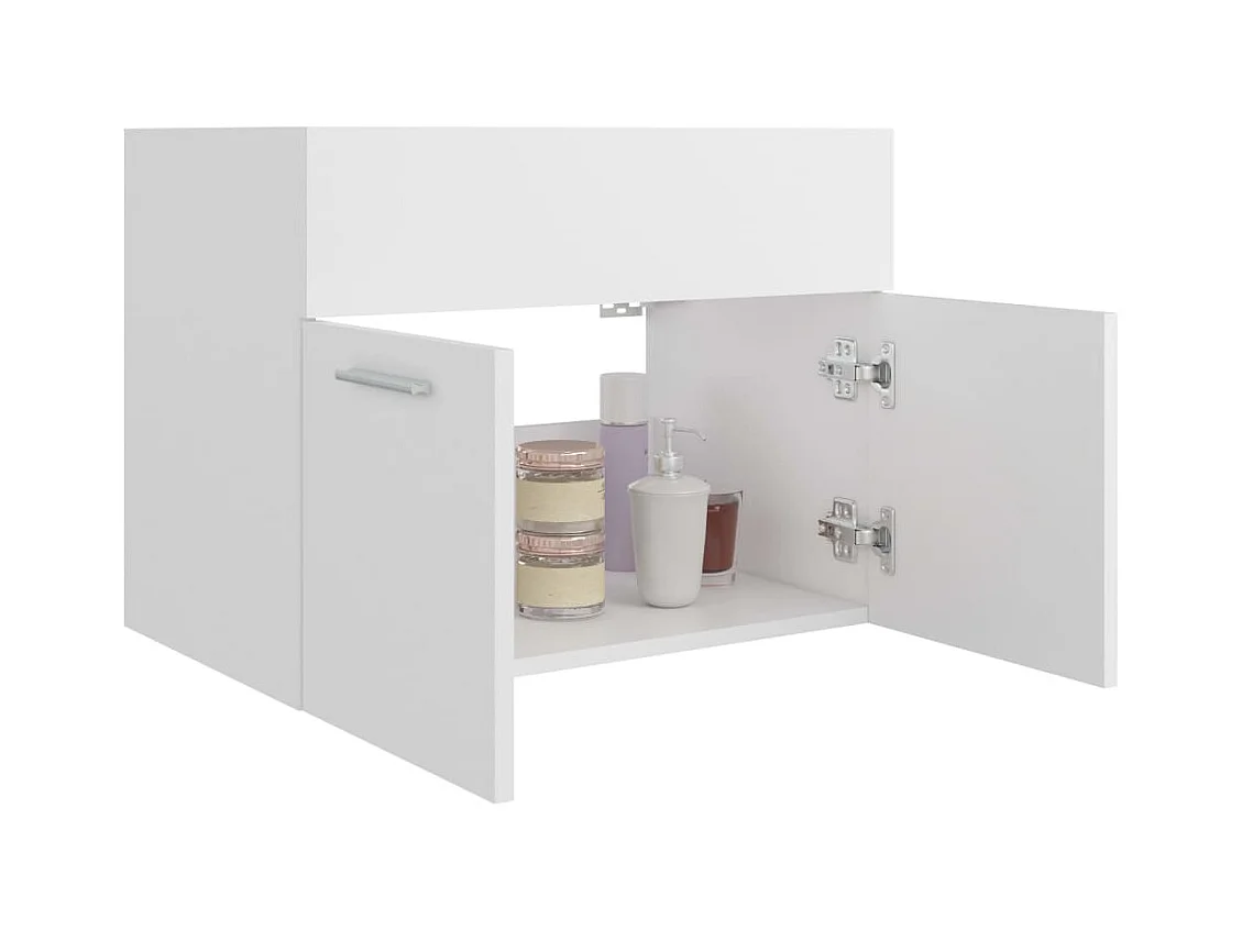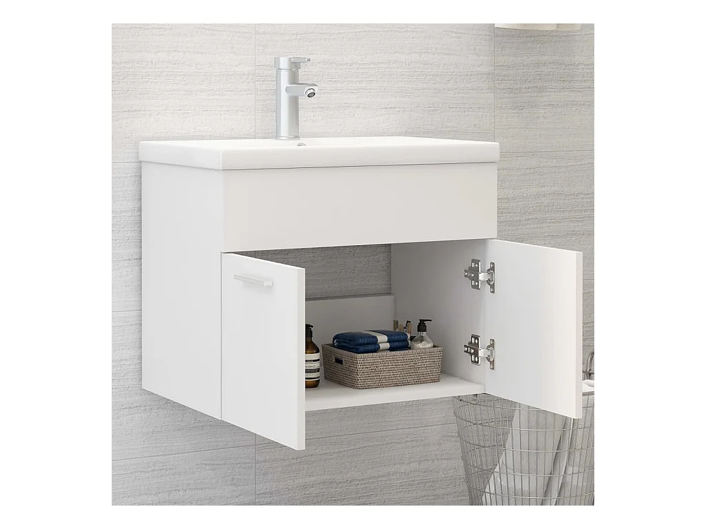 Armário de lavatório c/ lavatório embutido contraplacado branco