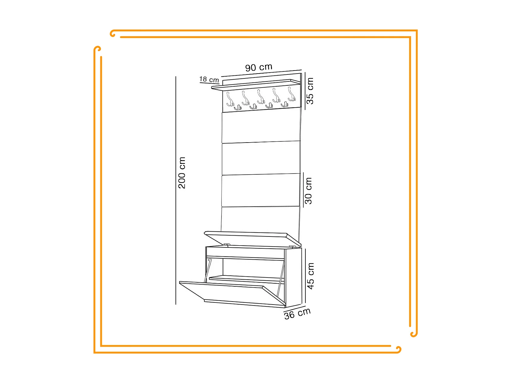 Móvel sapateira/armário - A112cm x C90cm x P27cm carvalho dourado pés branco - Volda