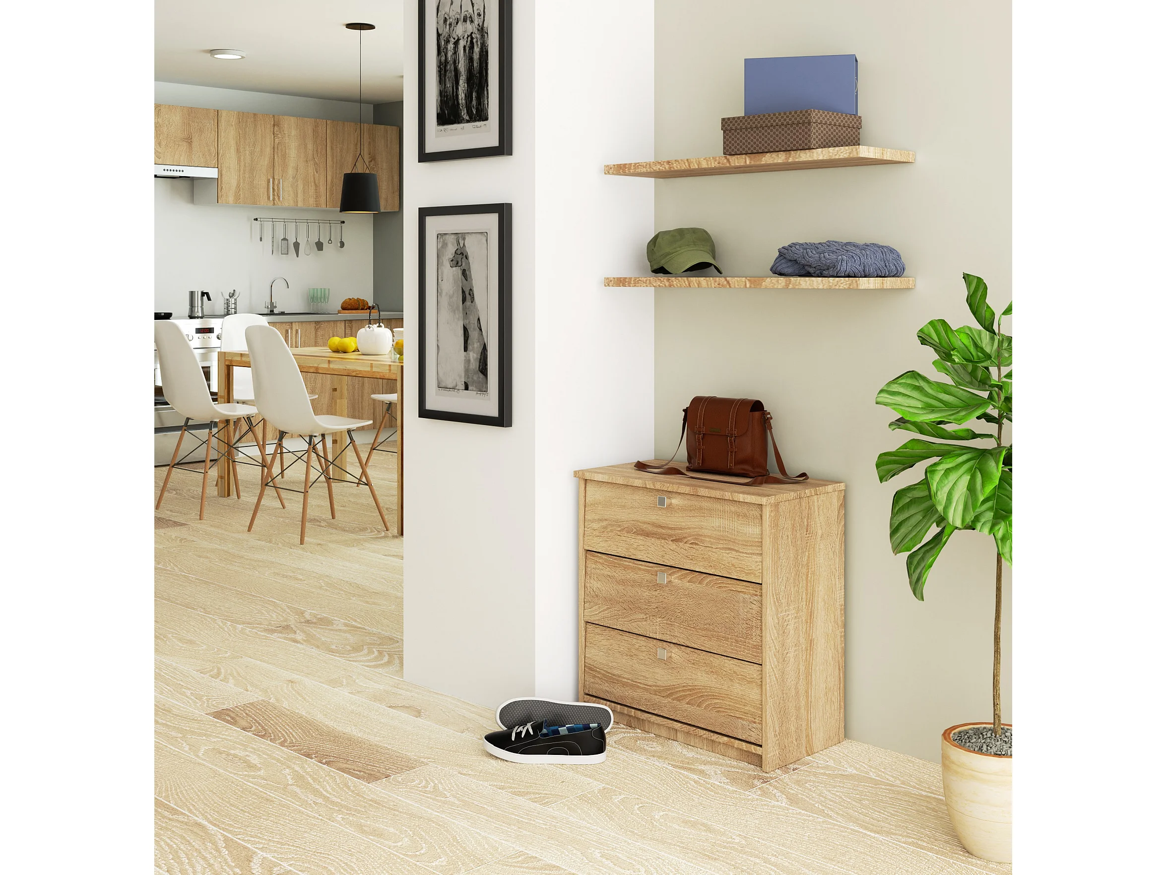 Móveis para sapateira Angel 3 portas cor carvalho claro, para 18 pares