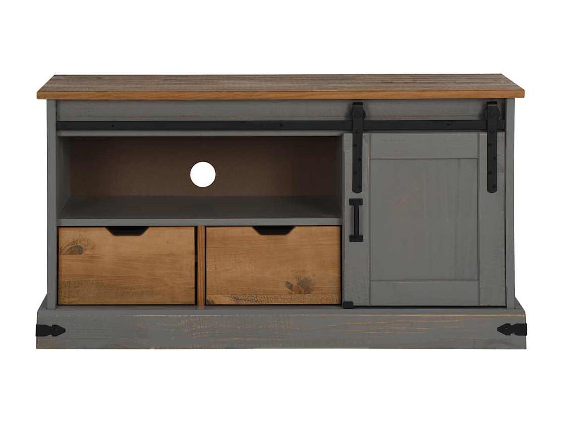 Armário para TV HALDEN com porta de correr Madeira maciça