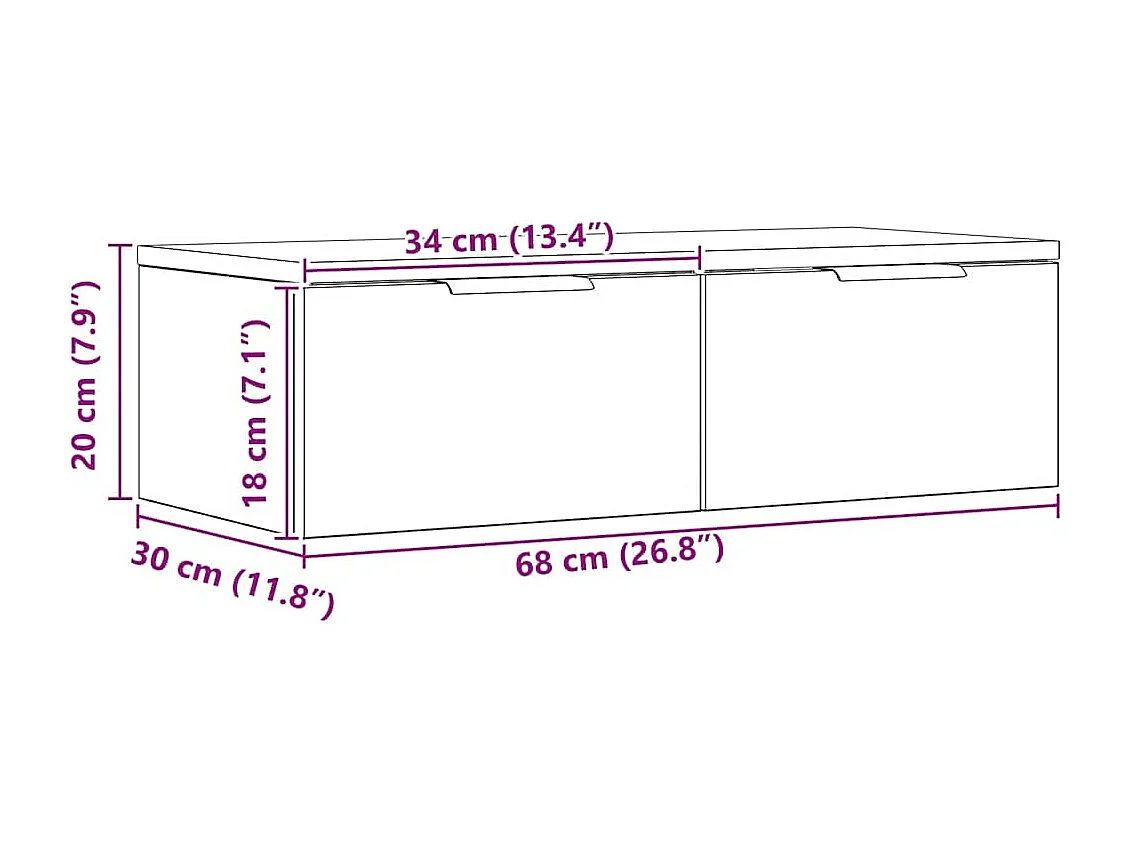 Armário de parede 68x30x20cm derivados de madeira madeira velha