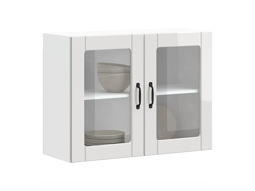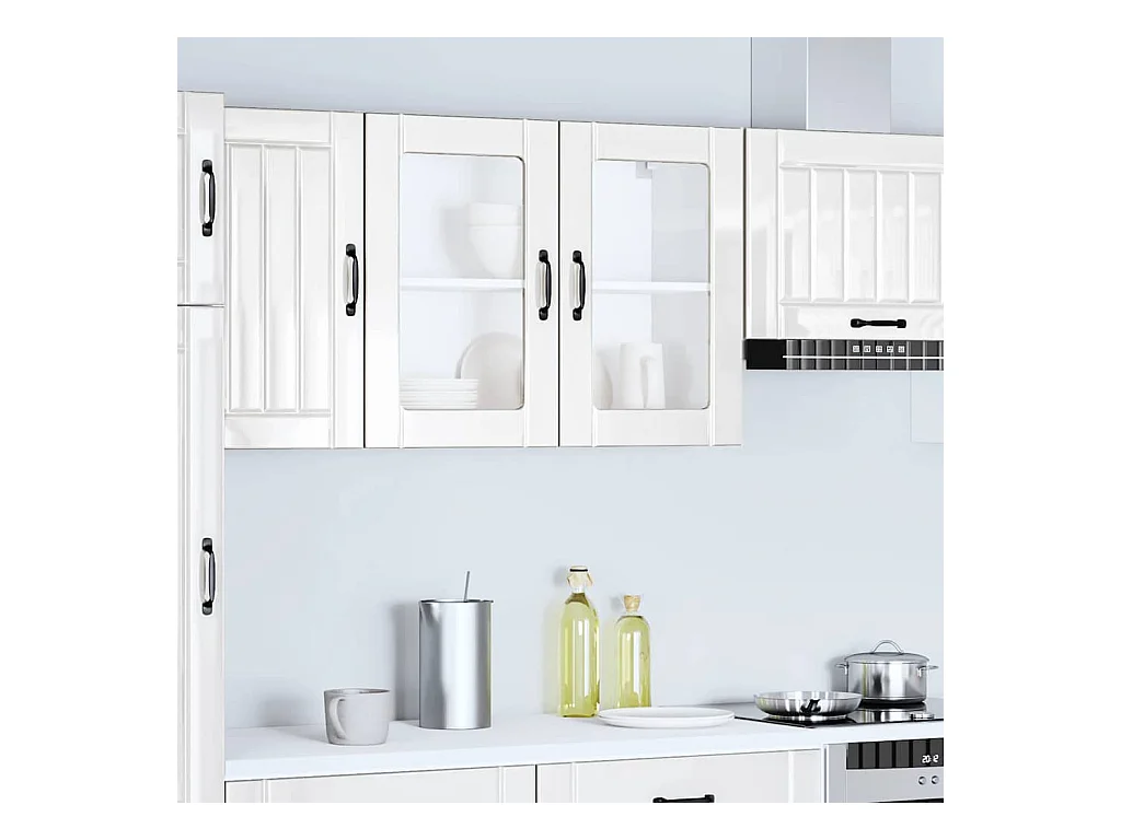 Armário parede de cozinha porta vidro Kalmar branco alto brilho