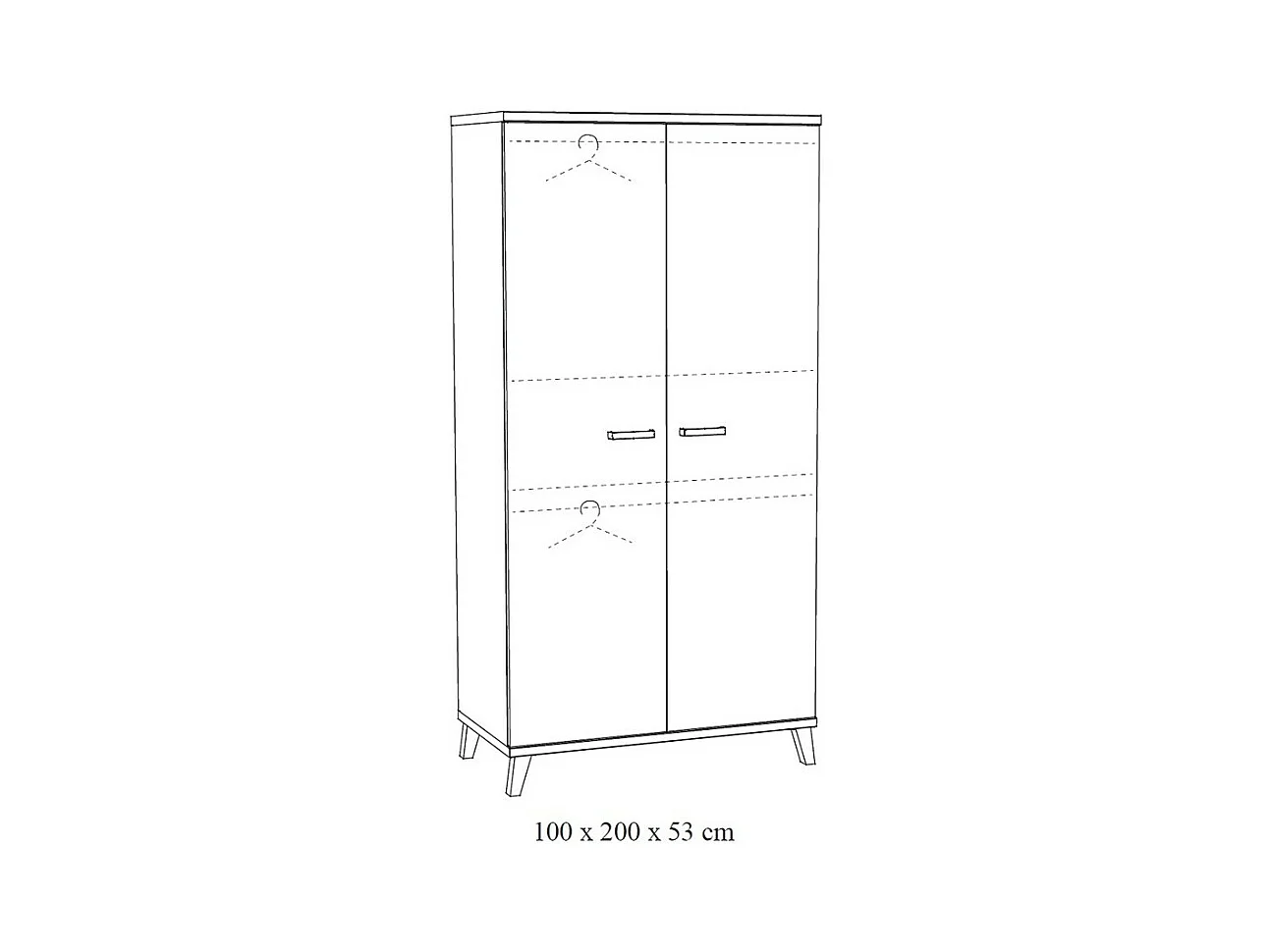 Armário resistente para quarto de criança com 2 portas, coleção DANAÉ, cor carvalho claro.