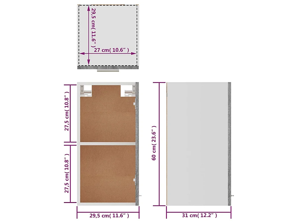 Armário suspenso “Lyon” 29,5x31x60cm cinza sonoma