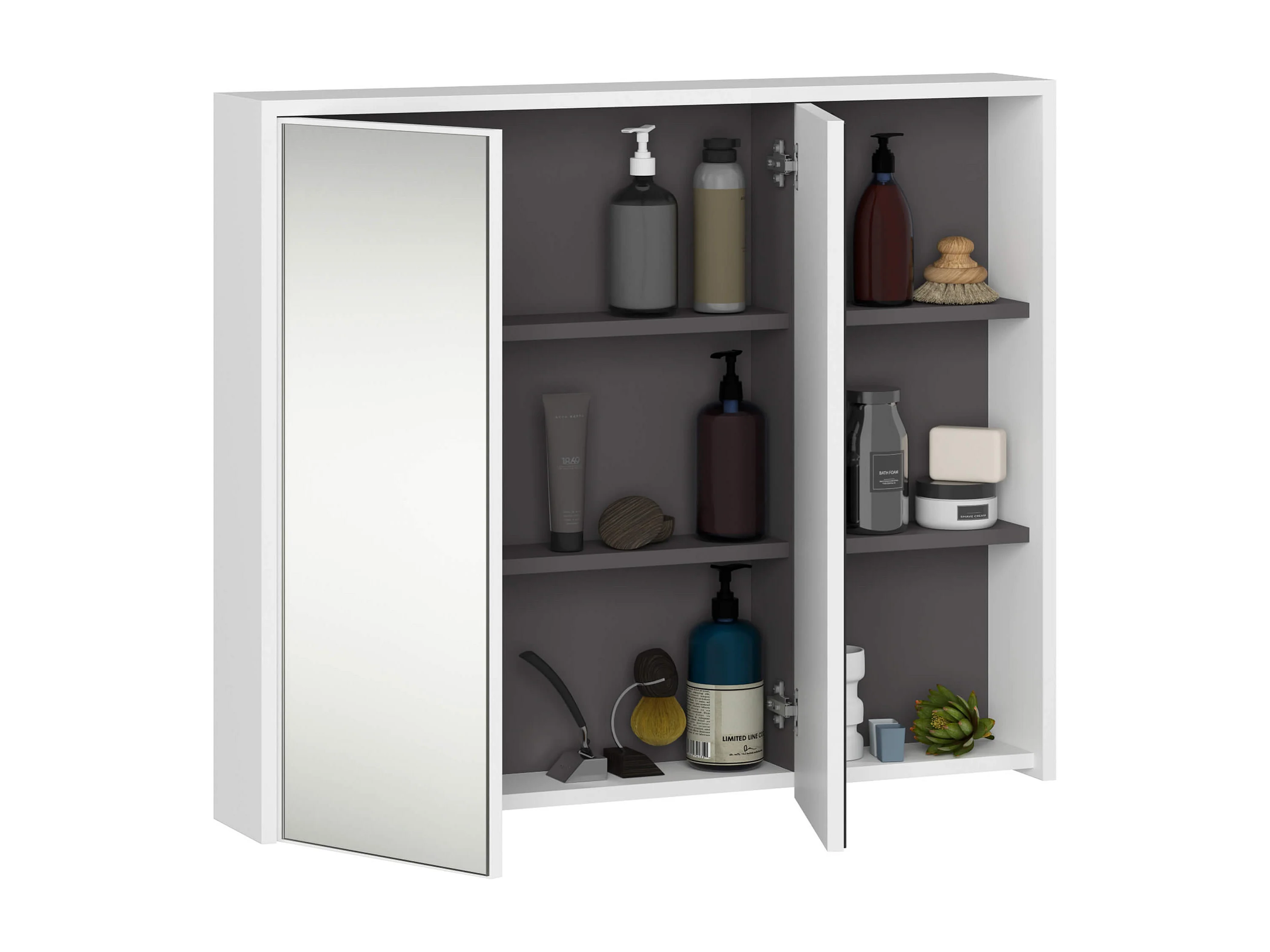 Armário Suspenso de Banheiro com Espelho VAMI W90 Branco/Grafite 2 Portas 3 Prateleiras