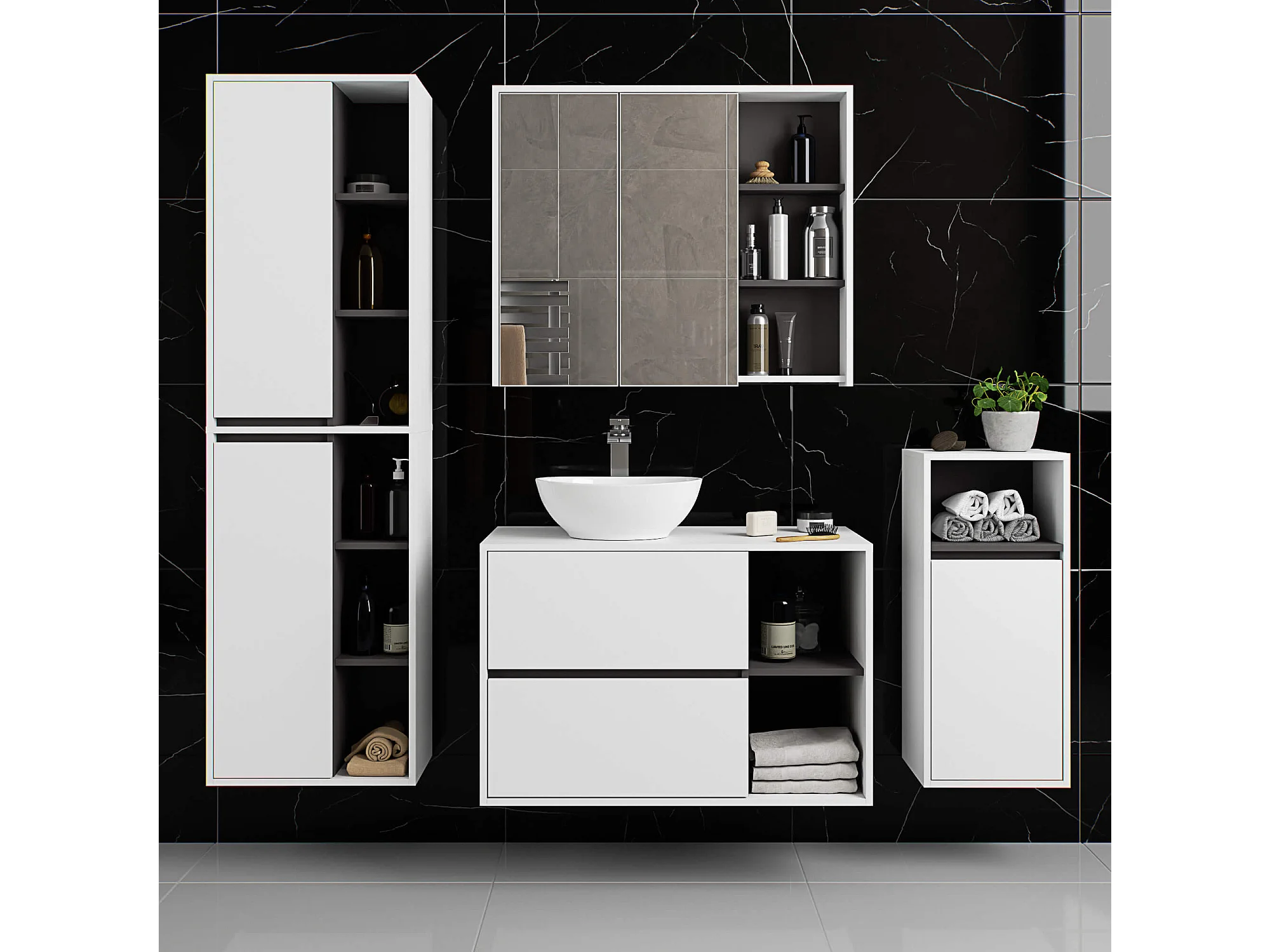 Armário Suspenso de Casa de Banho VAMI W35, Branco/Grafite Cinza, 35x80x30 cm, Montagem Fácil