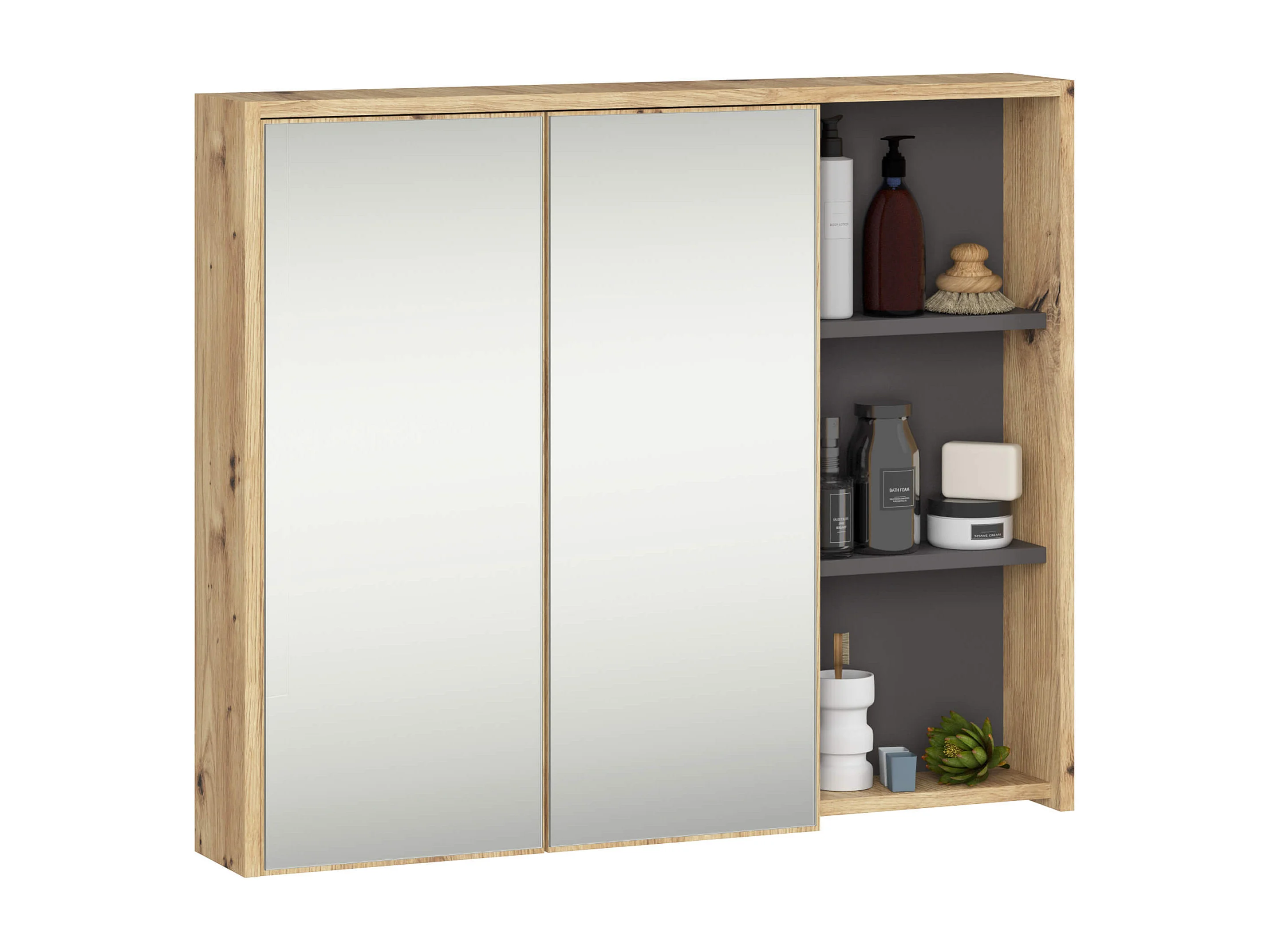 Armário Suspenso de Banheiro com Espelho VAMI W90 D2 P3 Carvalho Artisan/Grafite