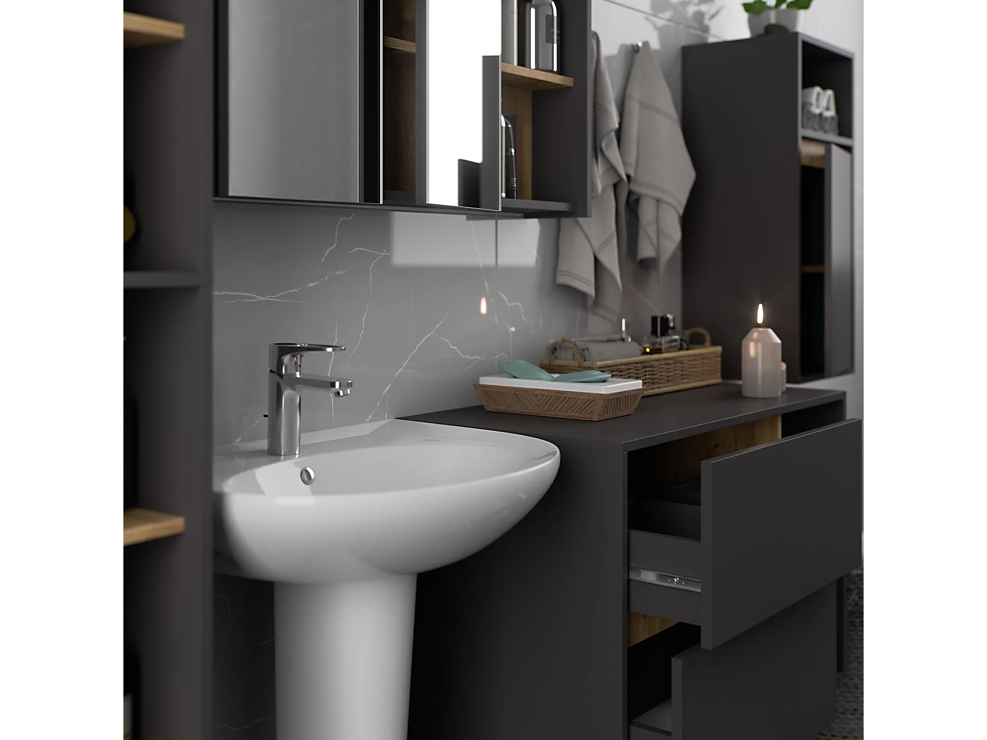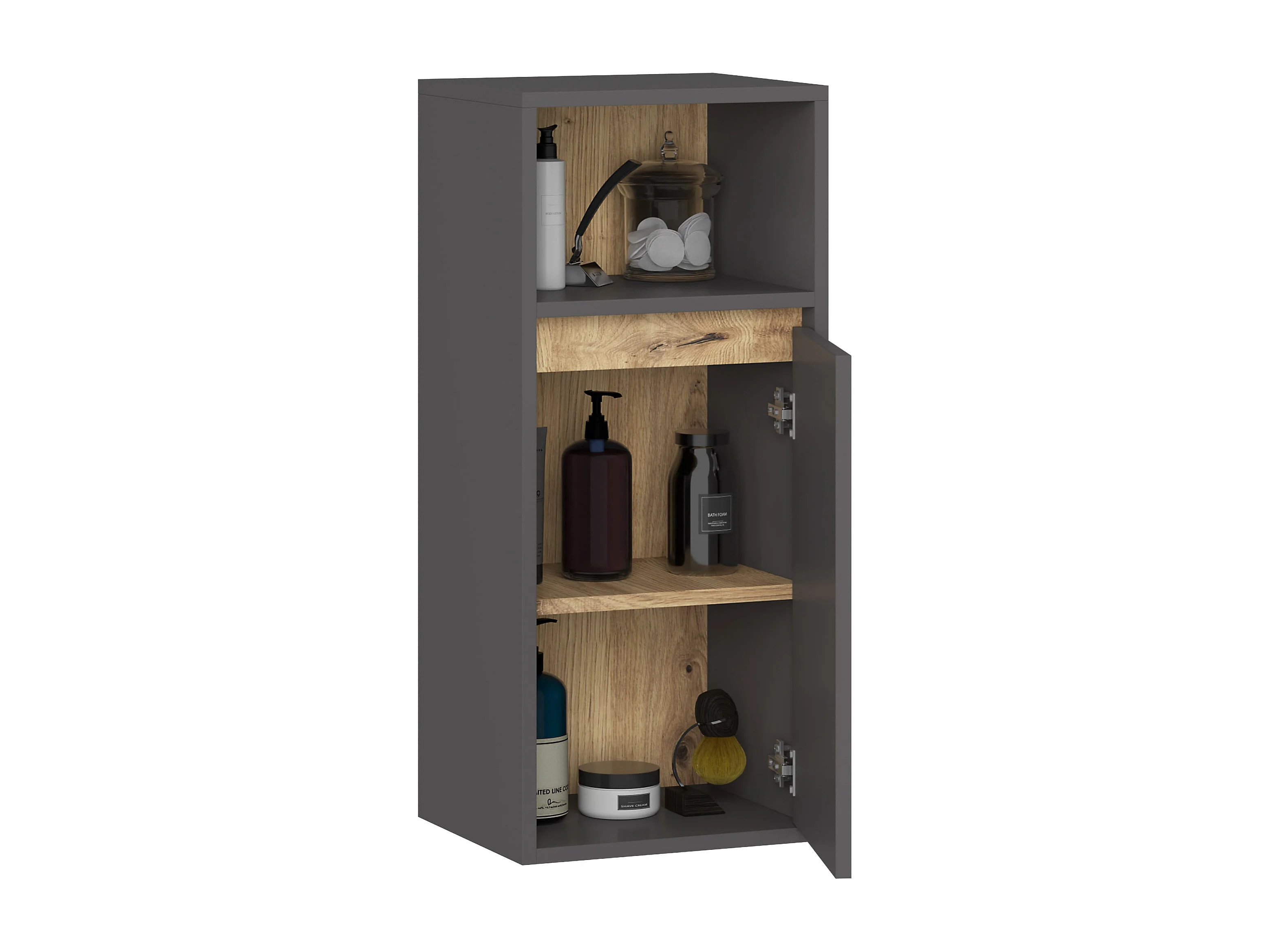 Armário Suspenso de Banheiro VAMI W35 Grafite/Carvalho Artesanal 35x80x30cm