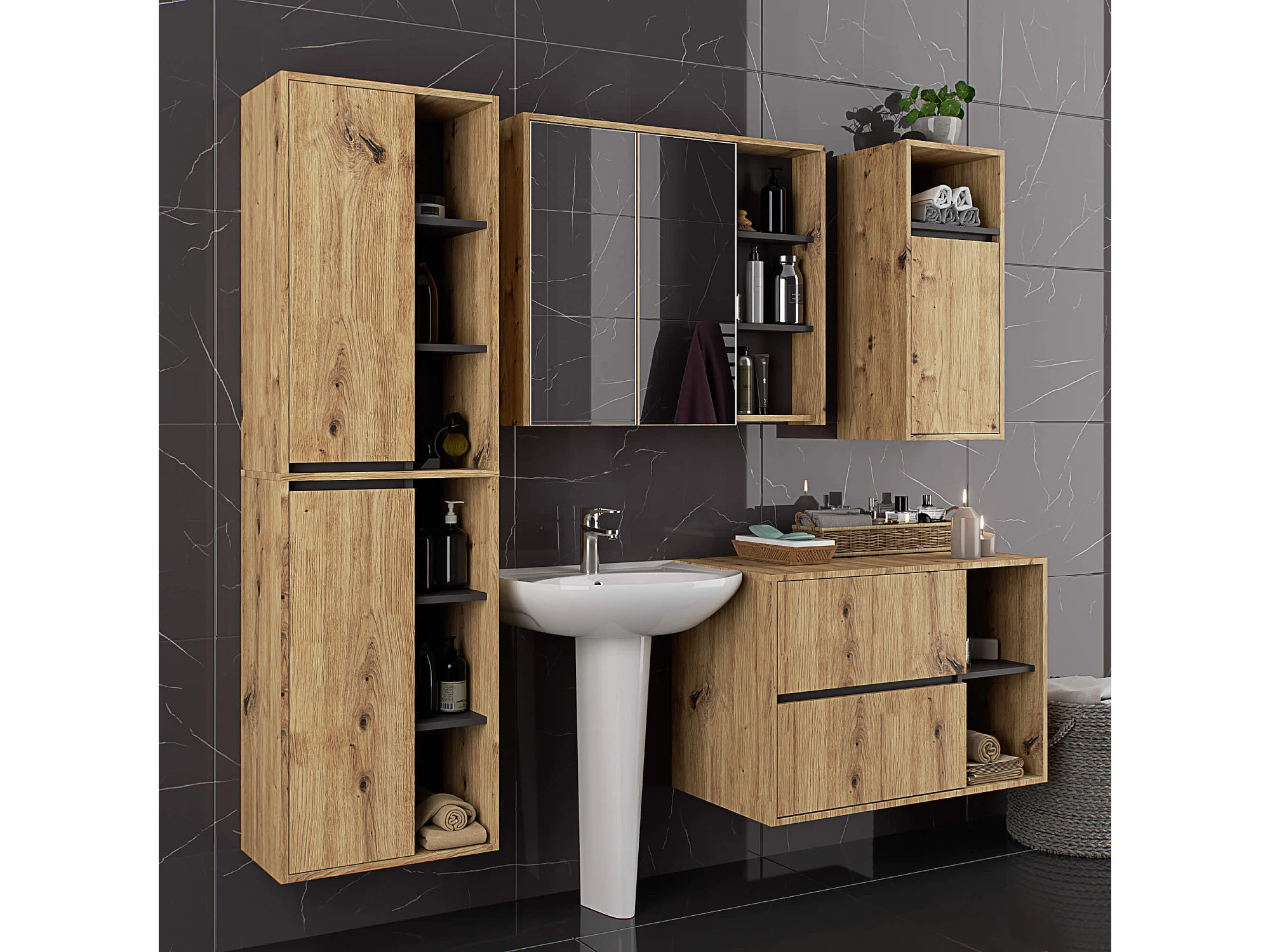 Armário Suspenso de Banheiro VAMI W50 2D 6P Carvalho/Grafite