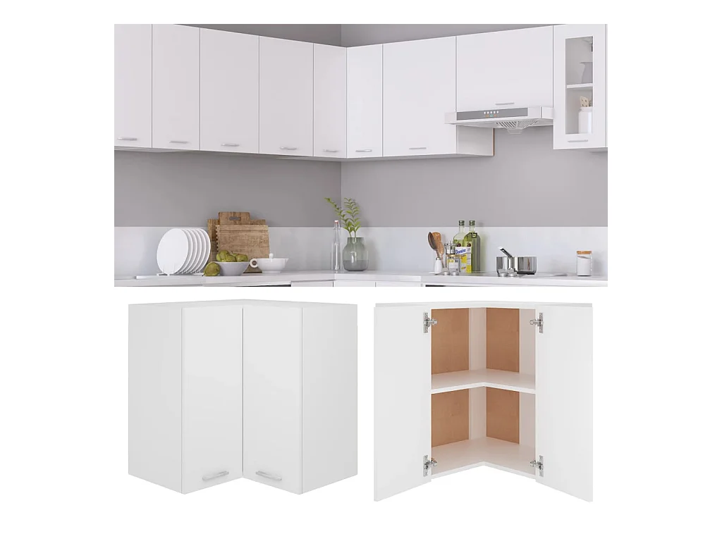 Armário suspenso de canto Branco 57x57x60 cm Madeira