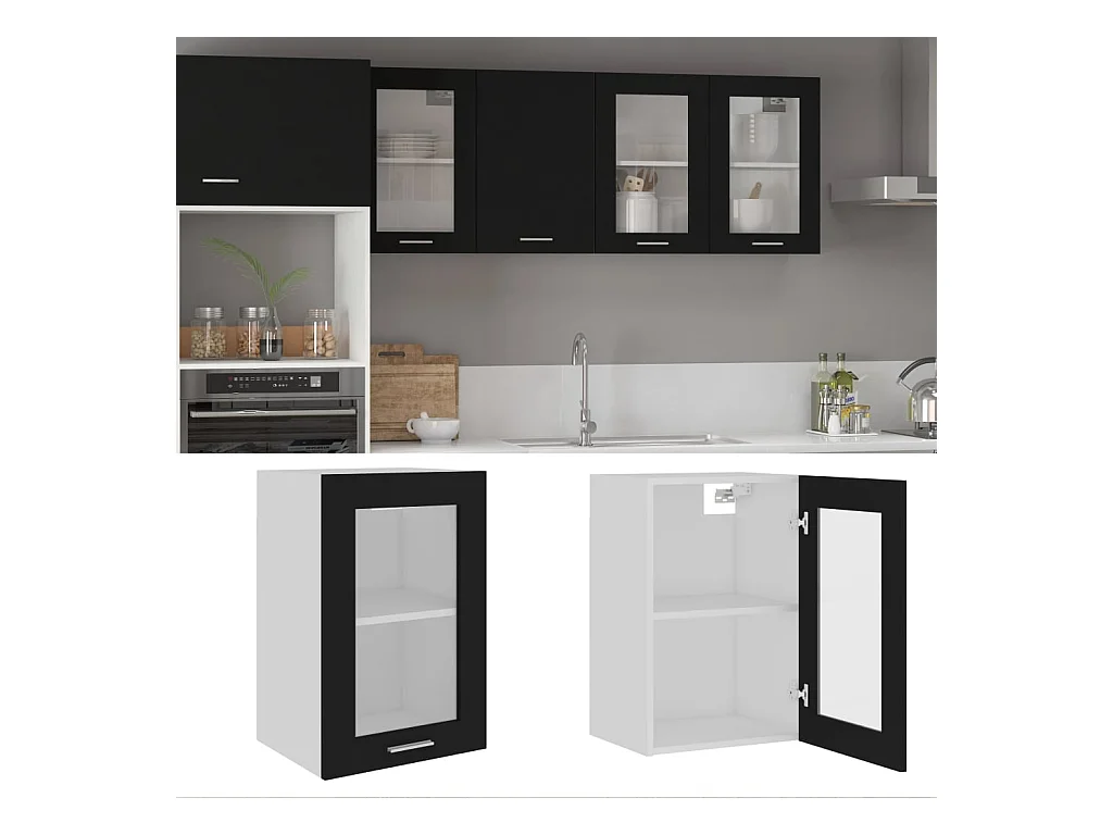 Armário suspenso de vidro preto 40x31x60 cm Madeira trabalhada